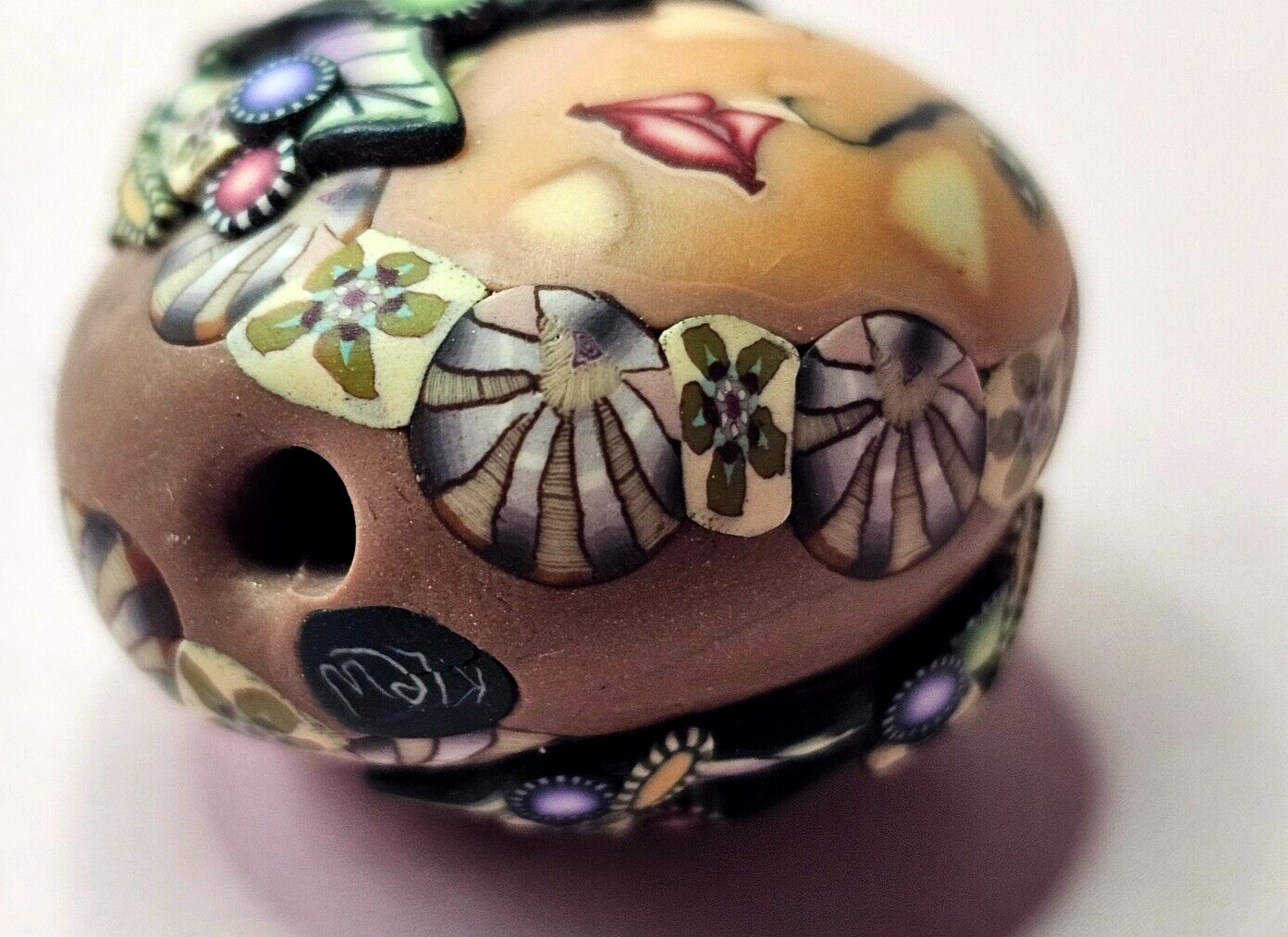 как выглядит Artisan Sculpted Bead 3D Cane Polymer Clay Woman Signed KLEW фото