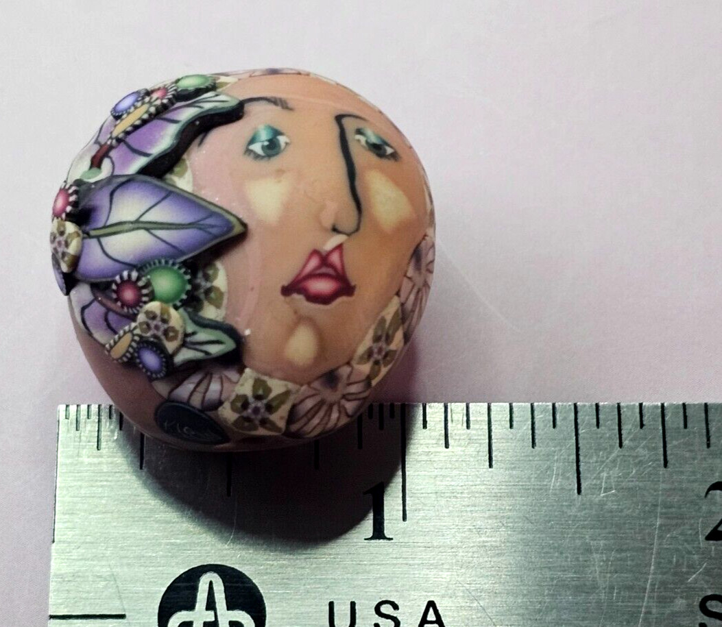 Artisan Sculpted Bead 3D Cane Polymer Clay Woman Signed KLEW