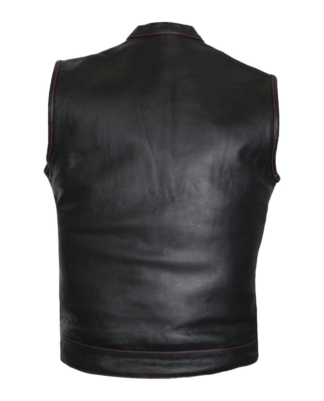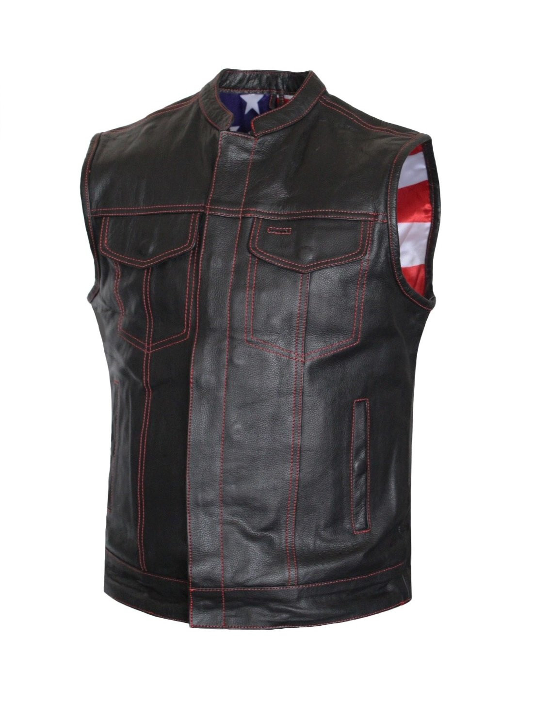 Motorcycle Leather Club Vest with Red Stitching US Flag Liner Concealed Carry