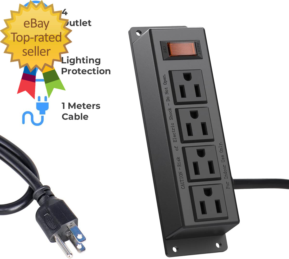 Wall Mount Power Outlet Strip 4 Outlet Mountable Power Strip with Switch 3Ft
