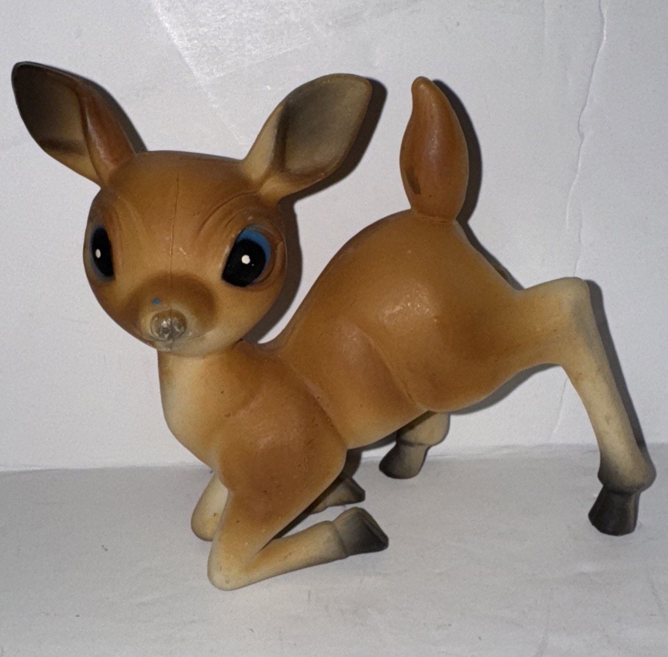 2 Vintage 60's Hard Plastic Big Eyed Deer Figurine Kitschy Retro Figure 4 Long