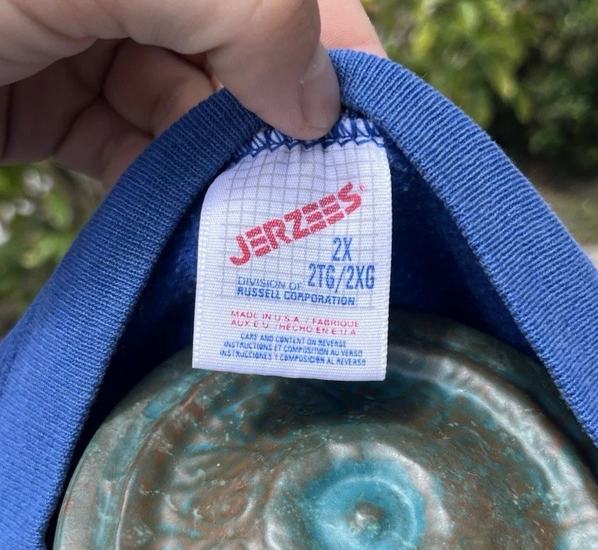 как выглядит Vintage Blank JERZEES Blue Crewneck Sweater Size 2XL Made In USA 90s Grunge Punk фото