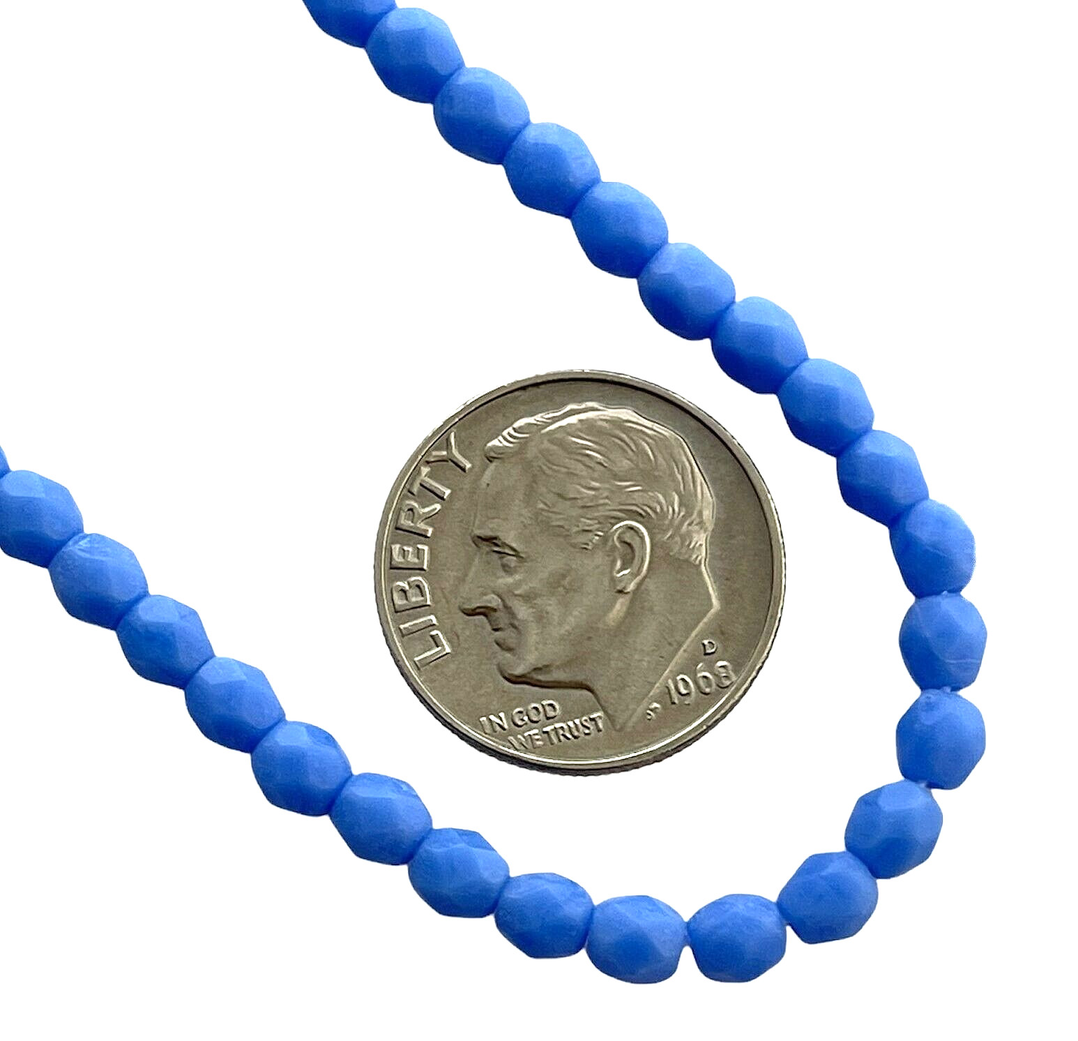 100 Opaque Blue Fire Polished Czech Glass 4mm Faceted Round Beads