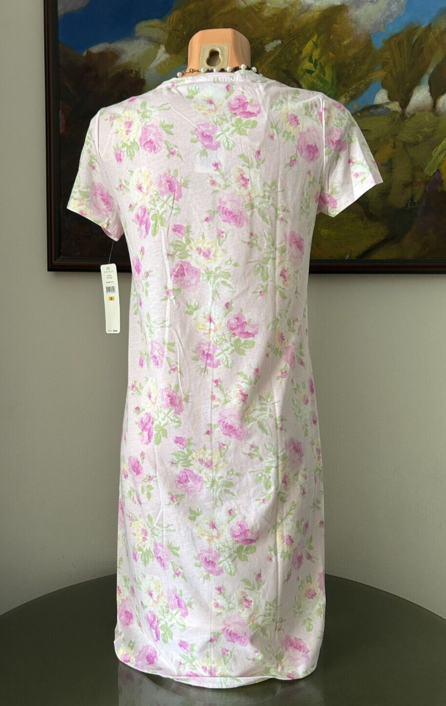 NWT LAUREN Ralph Lauren Pink Floral Cotton Short-Sleeve Nightgown, sz L