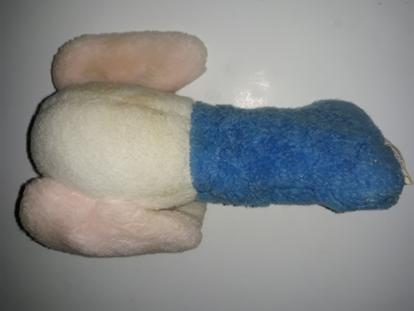 как выглядит Elephant Rattle Plush Handle 7" Stuffed Vintage Blue White Eden Toys Rare фото
