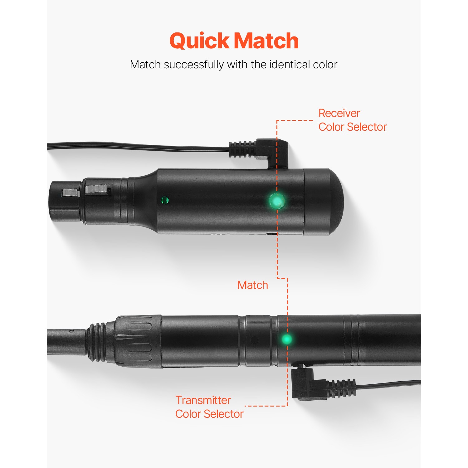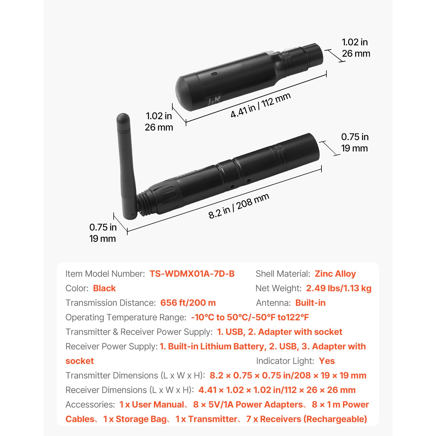 DMX Wireless Receiver Transmitter Rechargeable Battery Stage Light 8 PCs Black