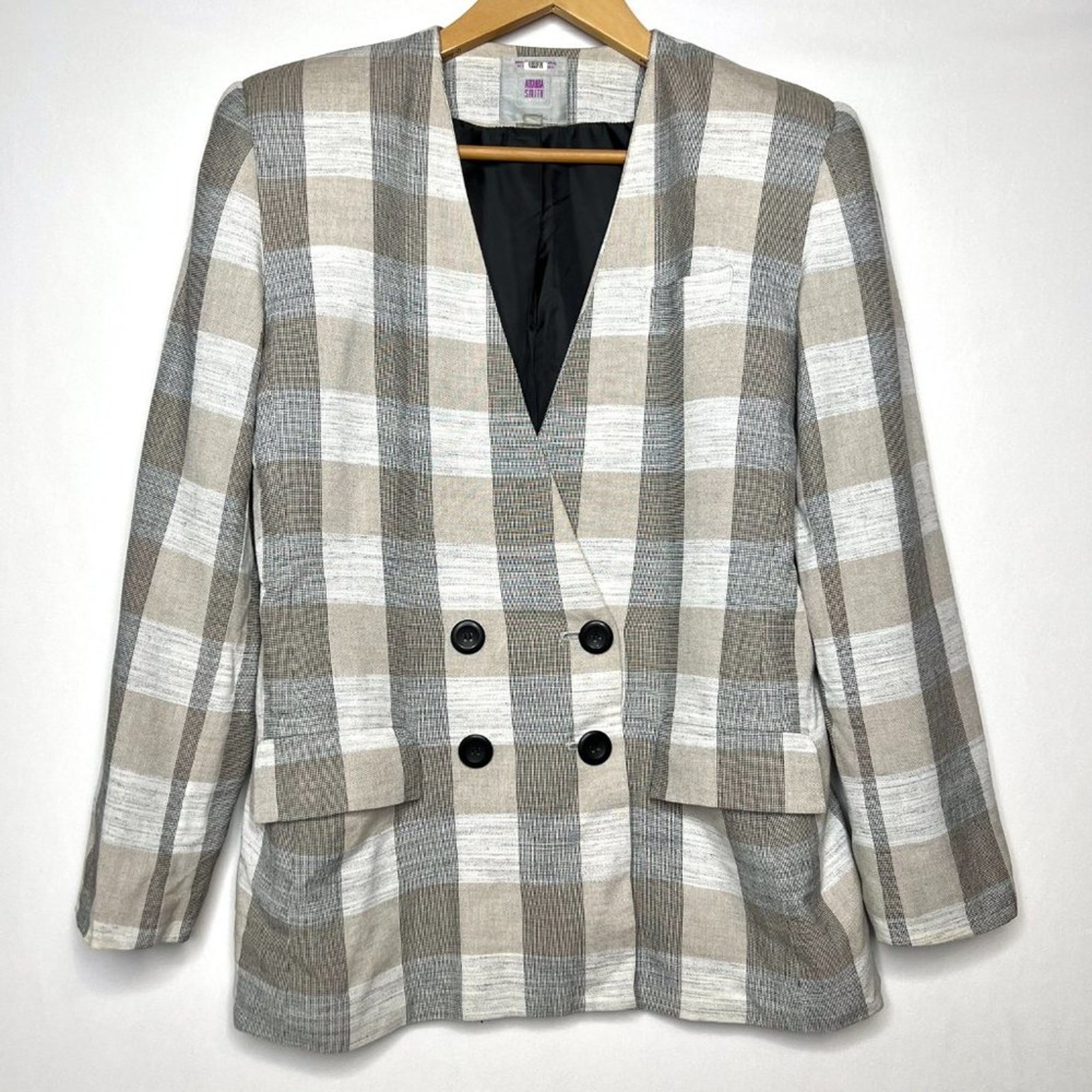 как выглядит Vintage Amanda Smith Plaid Check Double Breasted Blazer 10 фото