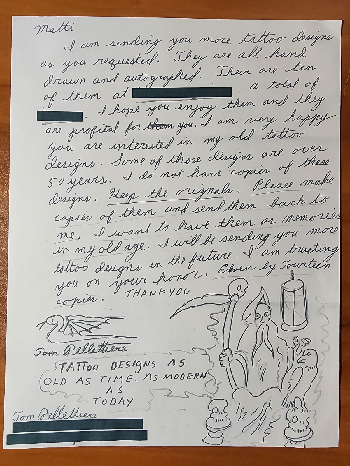 1960's Original Tom Pellettiere Zeis Vintage Tattoo Flash Sheet Hand Drawn