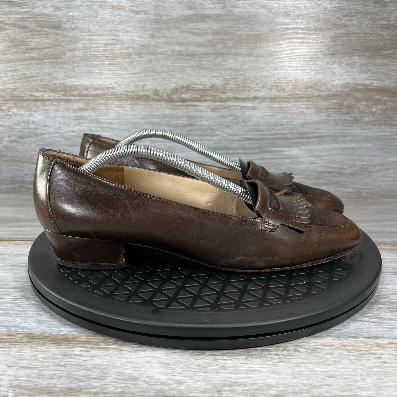 как выглядит Salvatore Ferragamo Women s Brown Leather Fringe Loafers Size 7 B фото