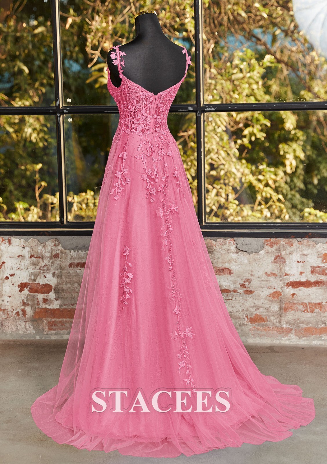 Stacees Prom Dress - A-line V Neck Sleeveless Sweep Train Tulle Prom Dress NEW