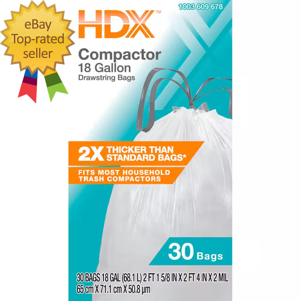 как выглядит 18 Gal. White Extra Tall Kitchen Drawstring Bags with 20 PCR 30-Count фото
