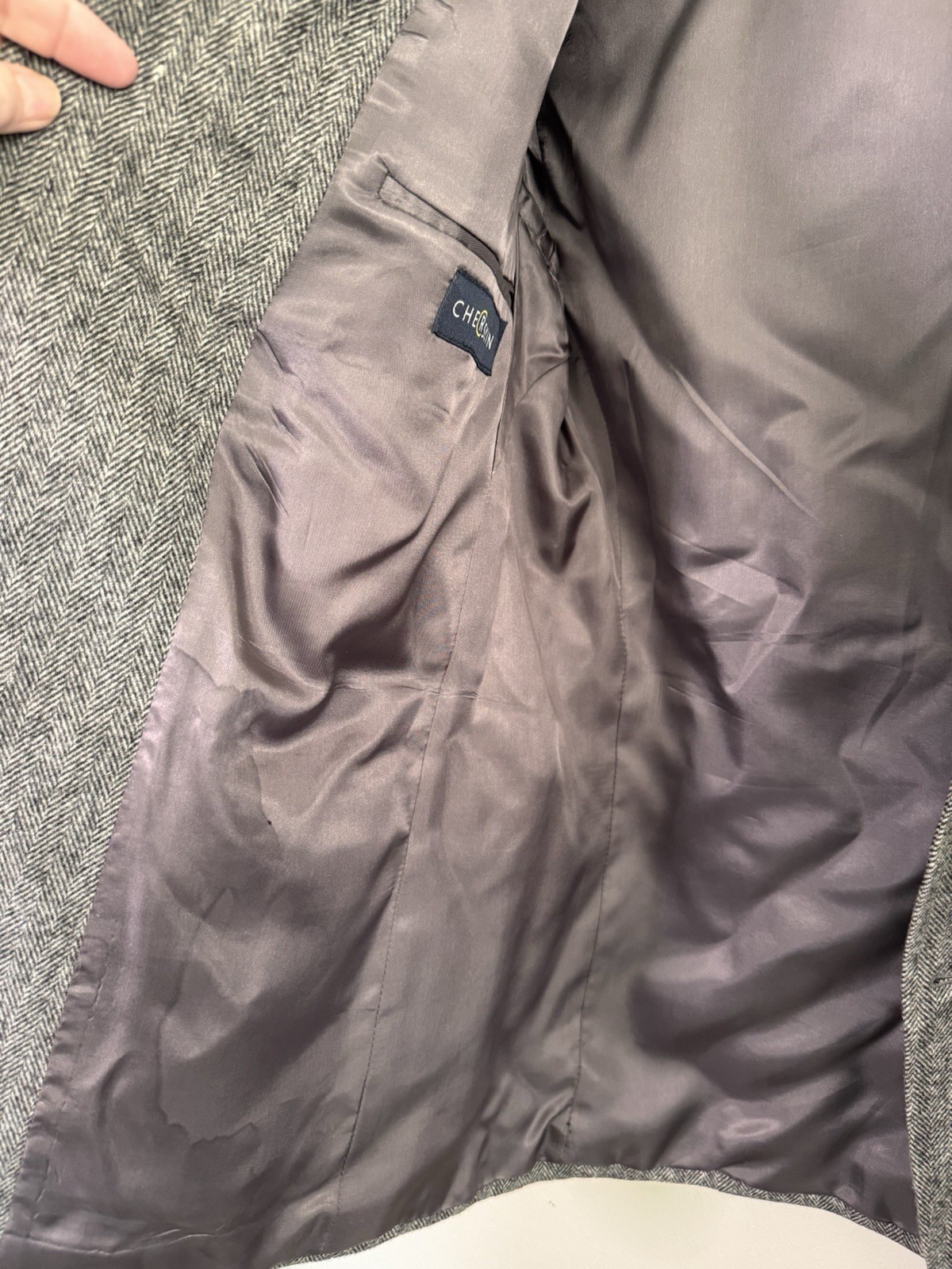 как выглядит CHERESKIN Vtg 90s Camel Hair Blend Gray Herringbone Tweed Blazer Sport Coat -42R фото