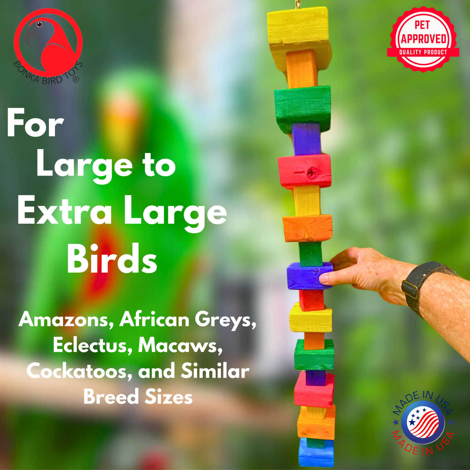 Bonka Bird Toys 1183 Extra Long Big Bites Rainbow Wood Tower Parrot Cage Toy Pet