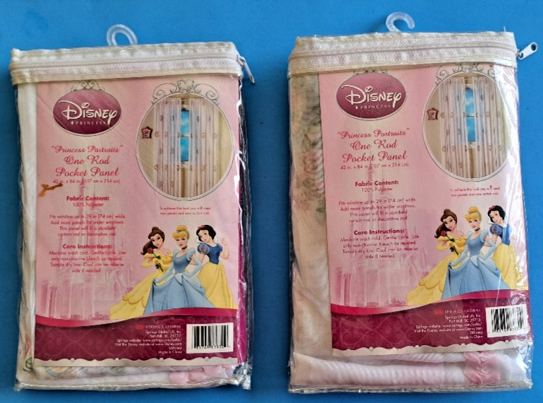 2 Disney Princess PRINCESS PORTRAITS One Rod Curtain Panels 42 X 84