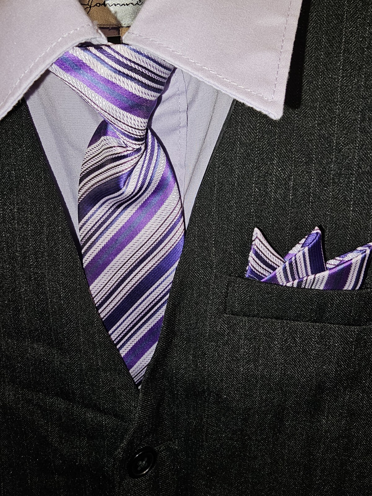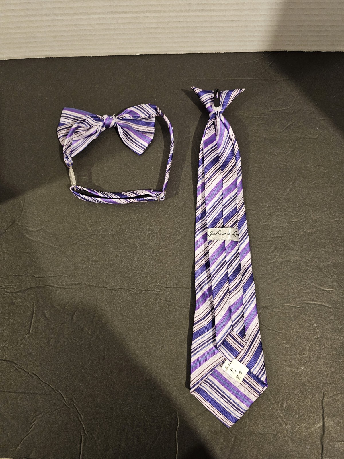 как выглядит Pinstripe Boys Formal Dresswear Vest Set 5 Piece Johnnie Lene Black/Lilac Size 6 фото