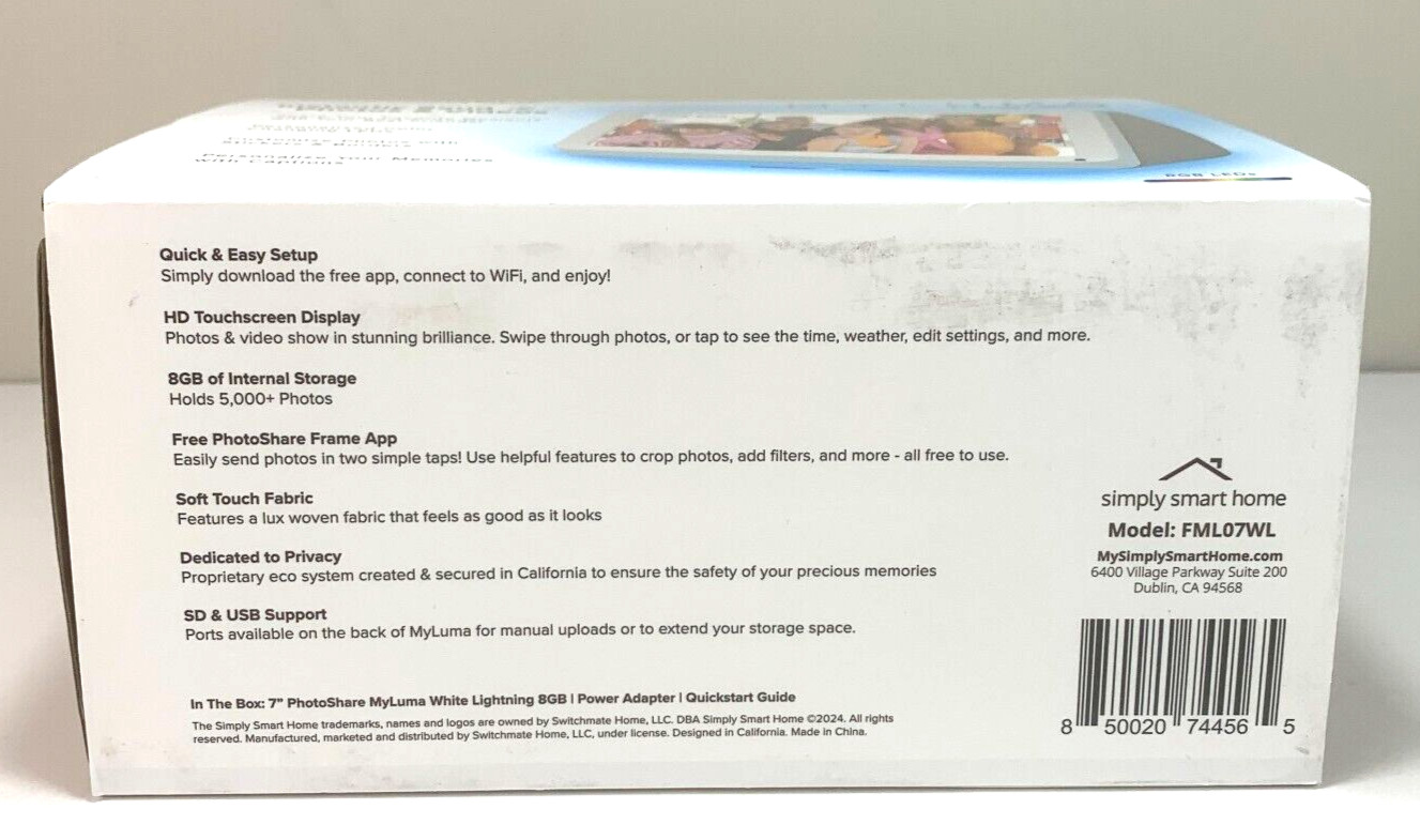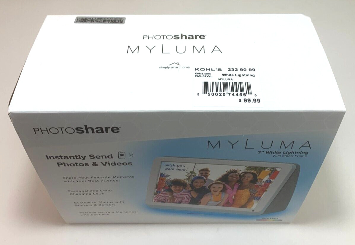 Photoshare My Luma 7 White Lightning WiFi Digital Photo Smart Frame New In Box