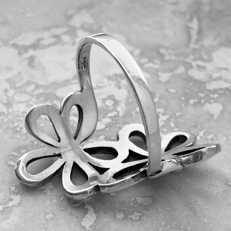 как выглядит 925 Sterling Silver Double Flower Ring, Statement Ring, Beautiful Silver Ring фото