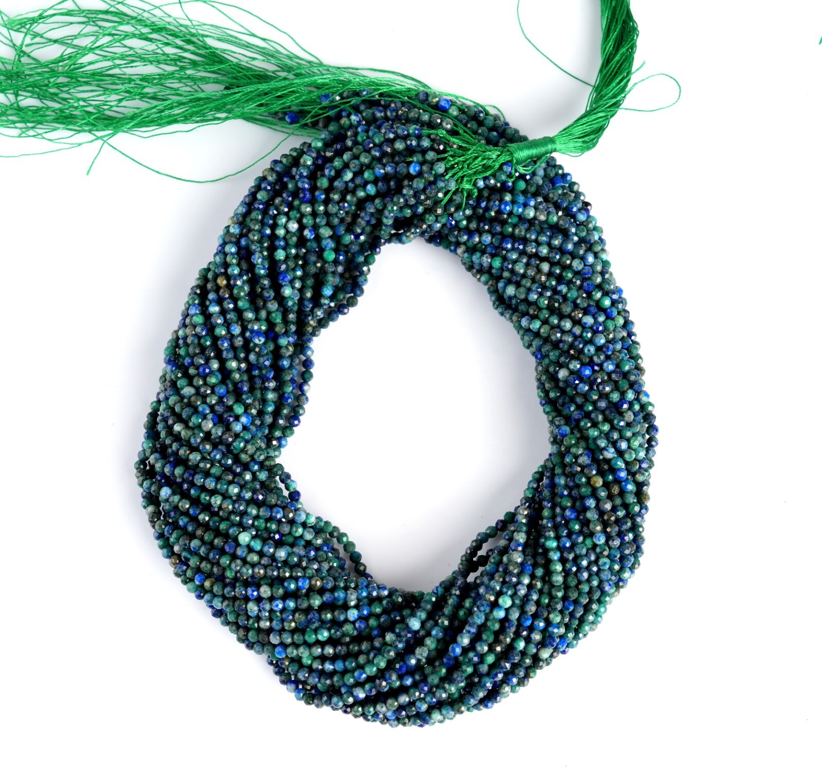 как выглядит Natural Azurite Gemstone Micro Faceted Cut Round Loose Beads String 15.5" фото