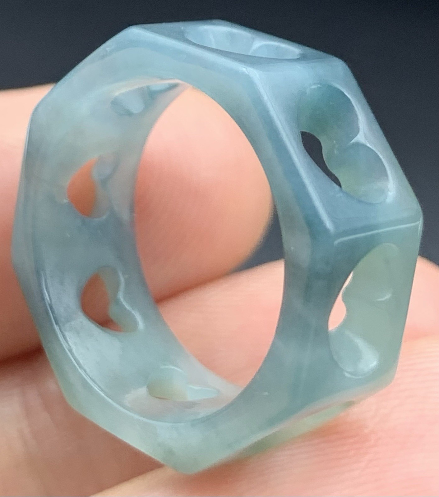 Video Certified Green A Jadeite Jade Love Heart Circle Ring NO. 5.5 419522