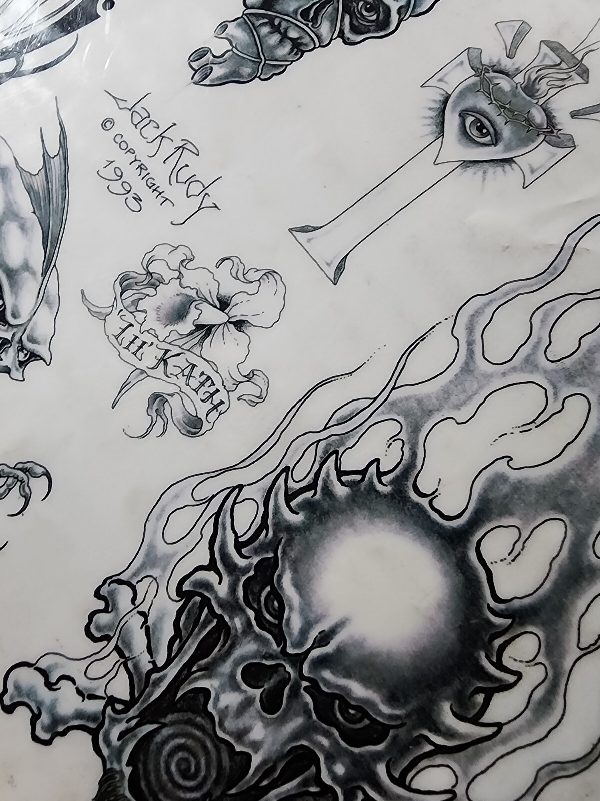 1993 VINTAGE Jack Rudy Traditional SHOP USED Tattoo Flash Sheet Biker Fantasy