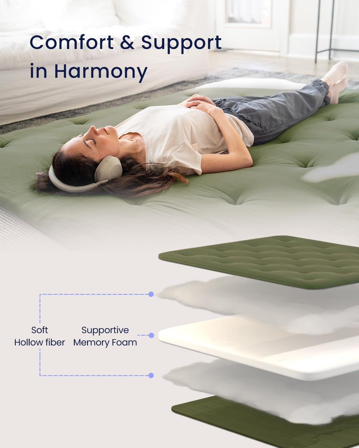 Размер: Twin (80"L x 39"W x 2.5"Th)