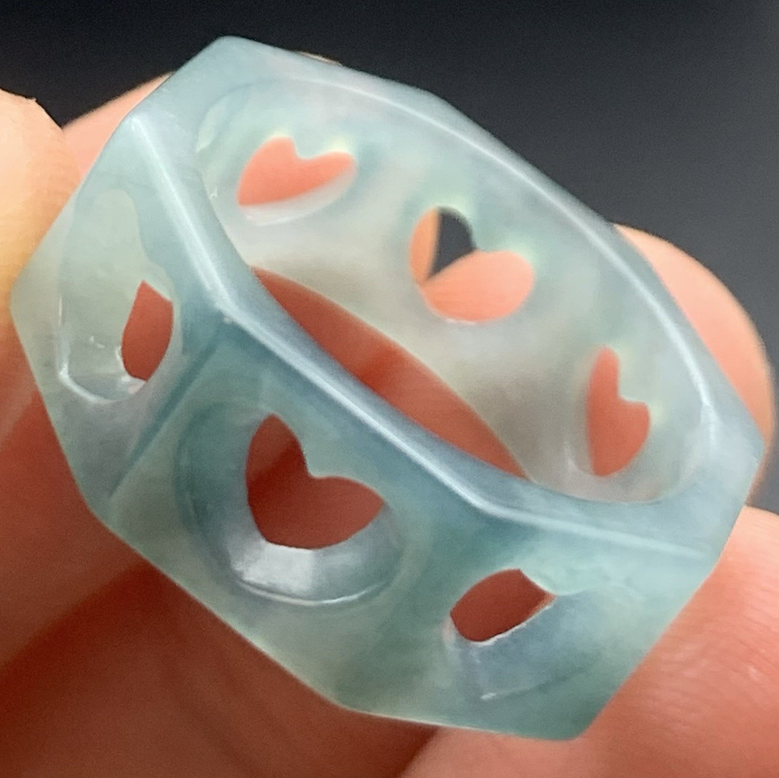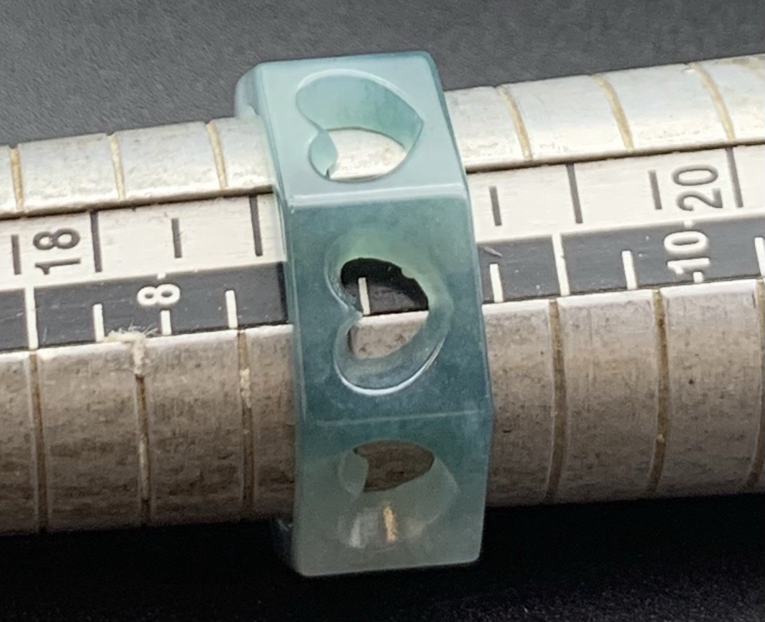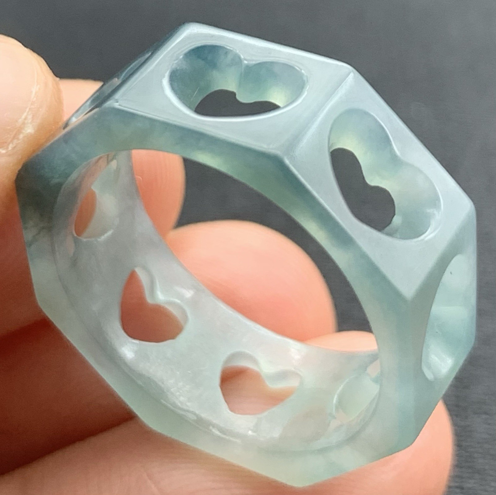 Video Certified Green A Jadeite Jade Love Heart Circle Ring NO. 8.75 419535