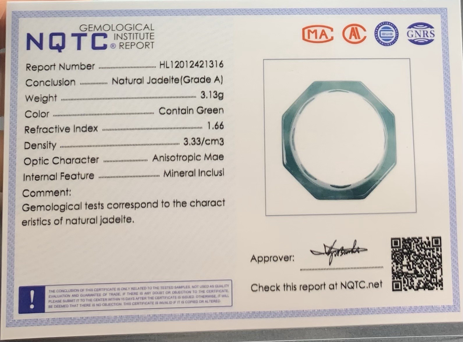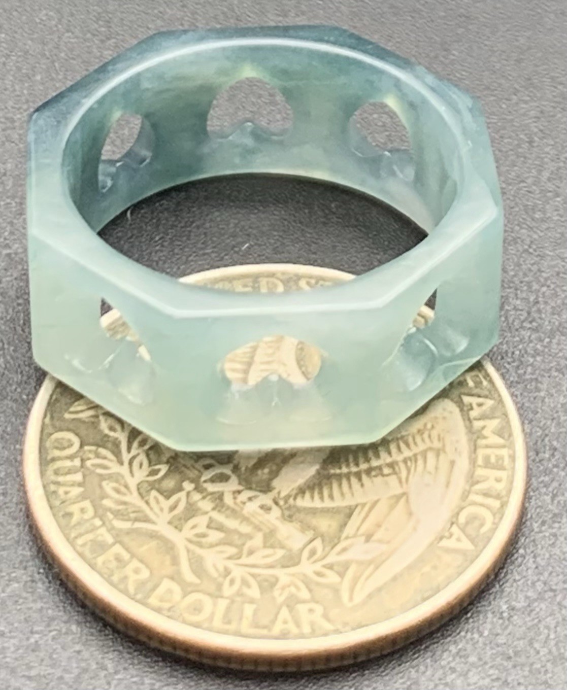 как выглядит Video Certified Green A Jadeite Jade Love Heart Circle Ring NO. 8.75 419535 фото