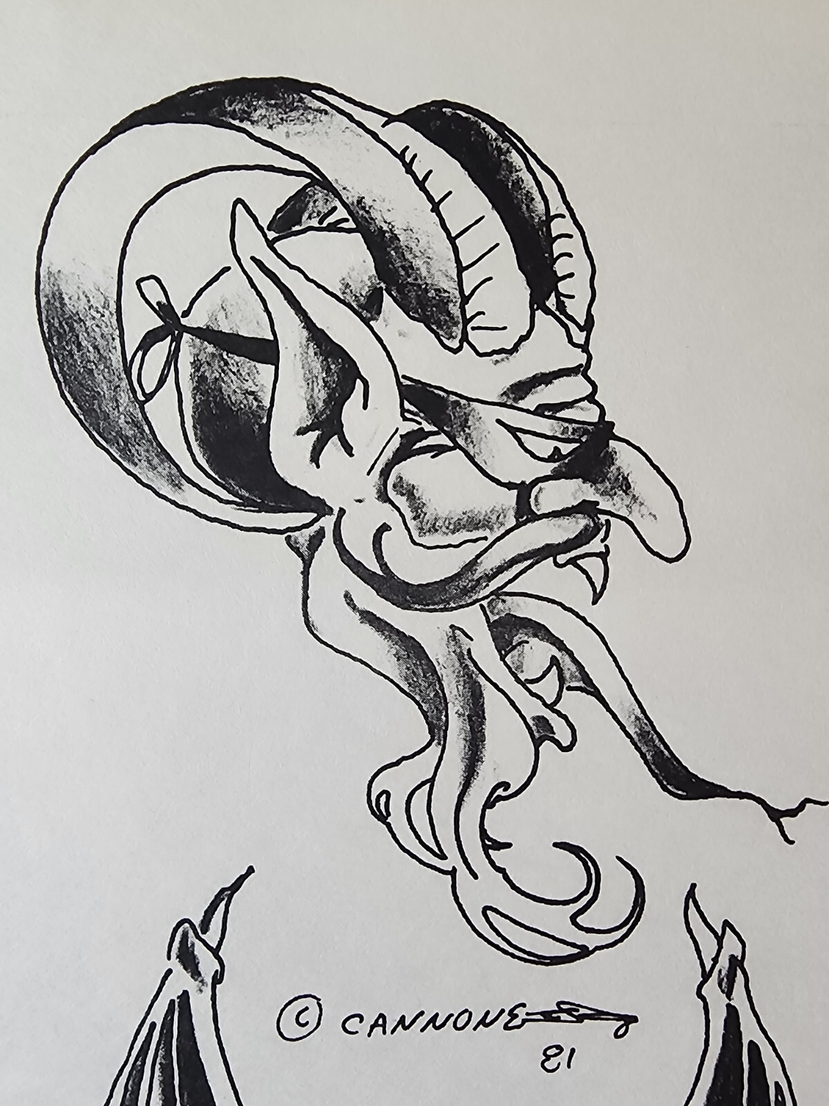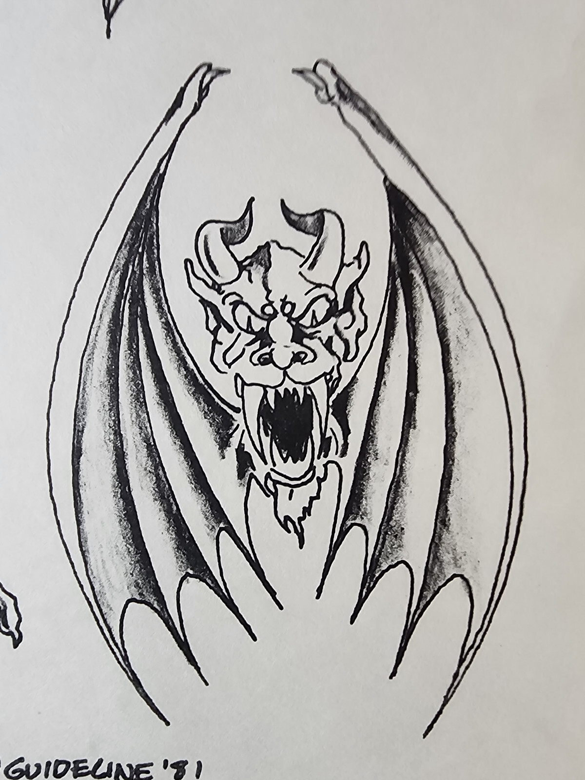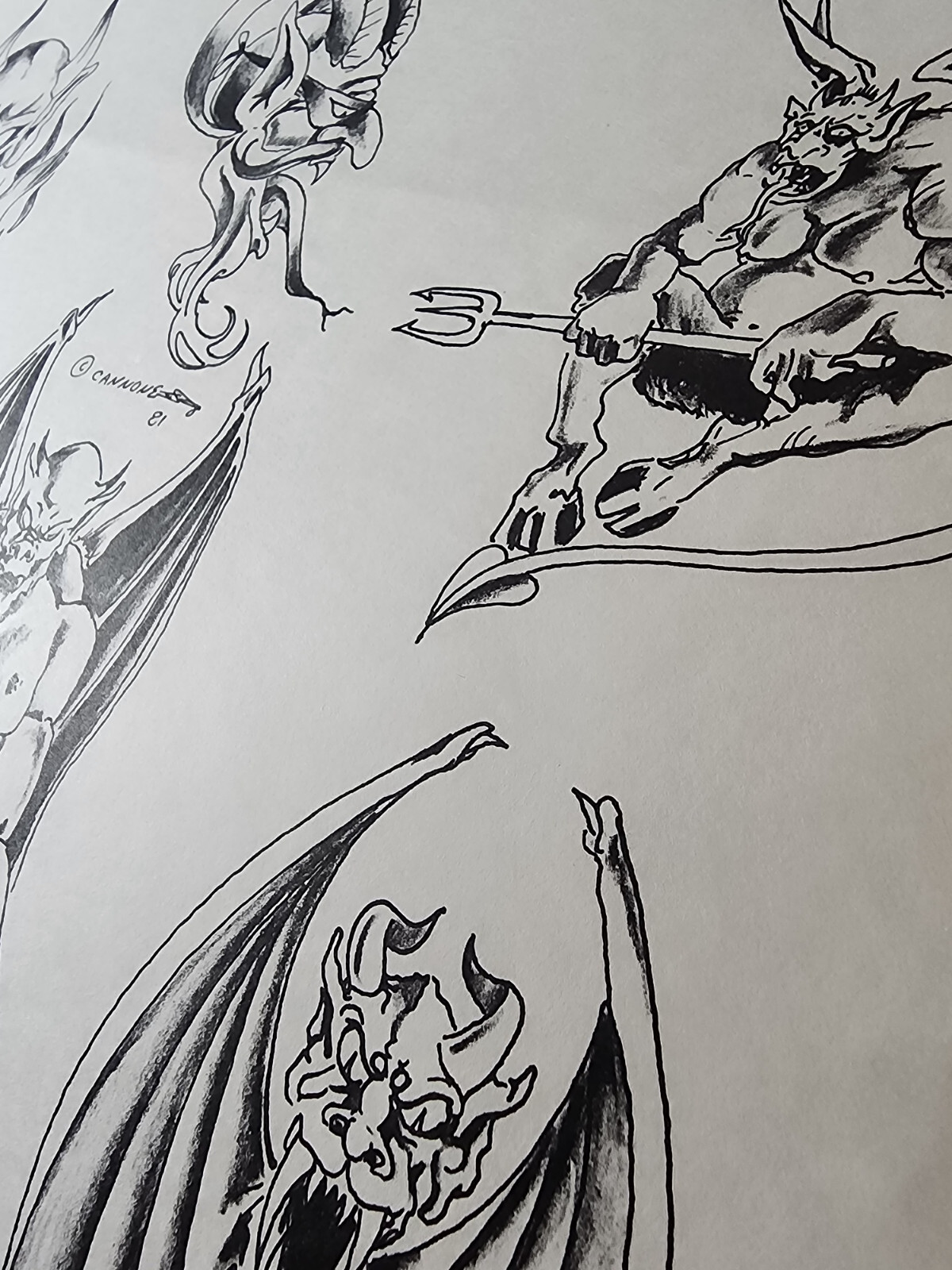 ORIGINAL Vintage 1981 Guideline LTD Shop Used Tattoo Flash Sheet, Devils, Demons