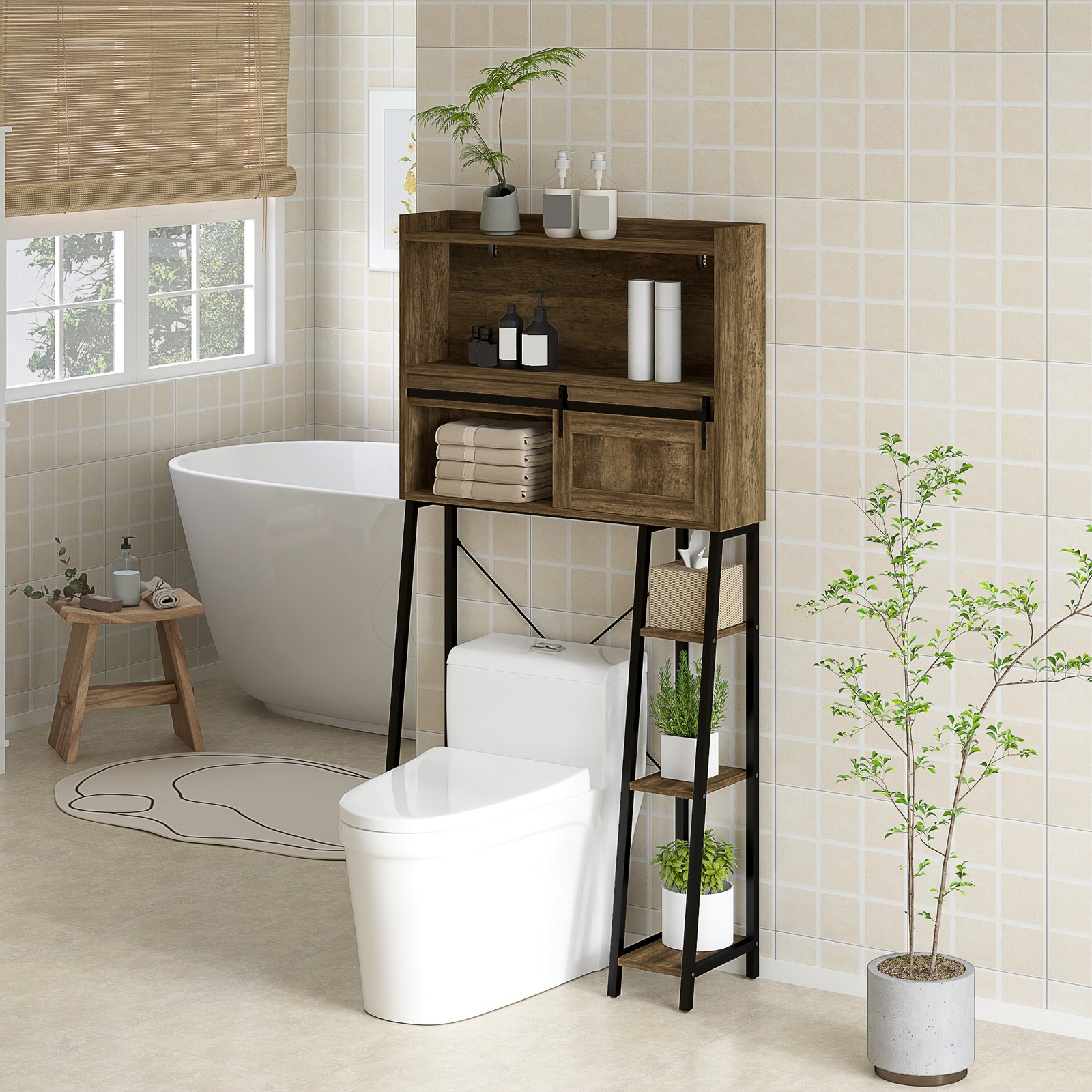 HOMCOM Over the Toilet Storage Cabinet, Over Toilet Bathroom Organizer