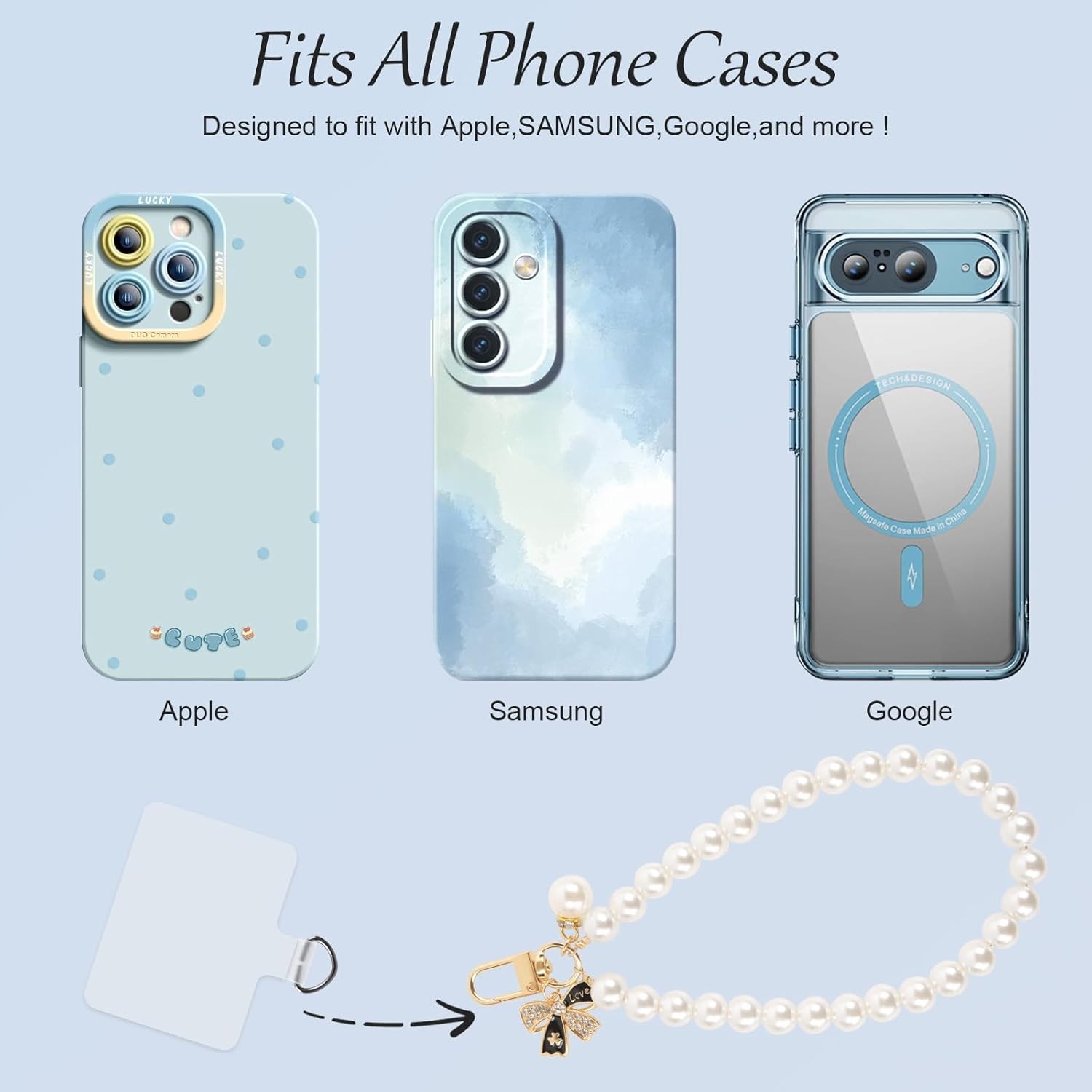 как выглядит AULEEP 2pcs Classic Pearl Phone Charm for Women, Butterfly Beaded Smartphone... фото