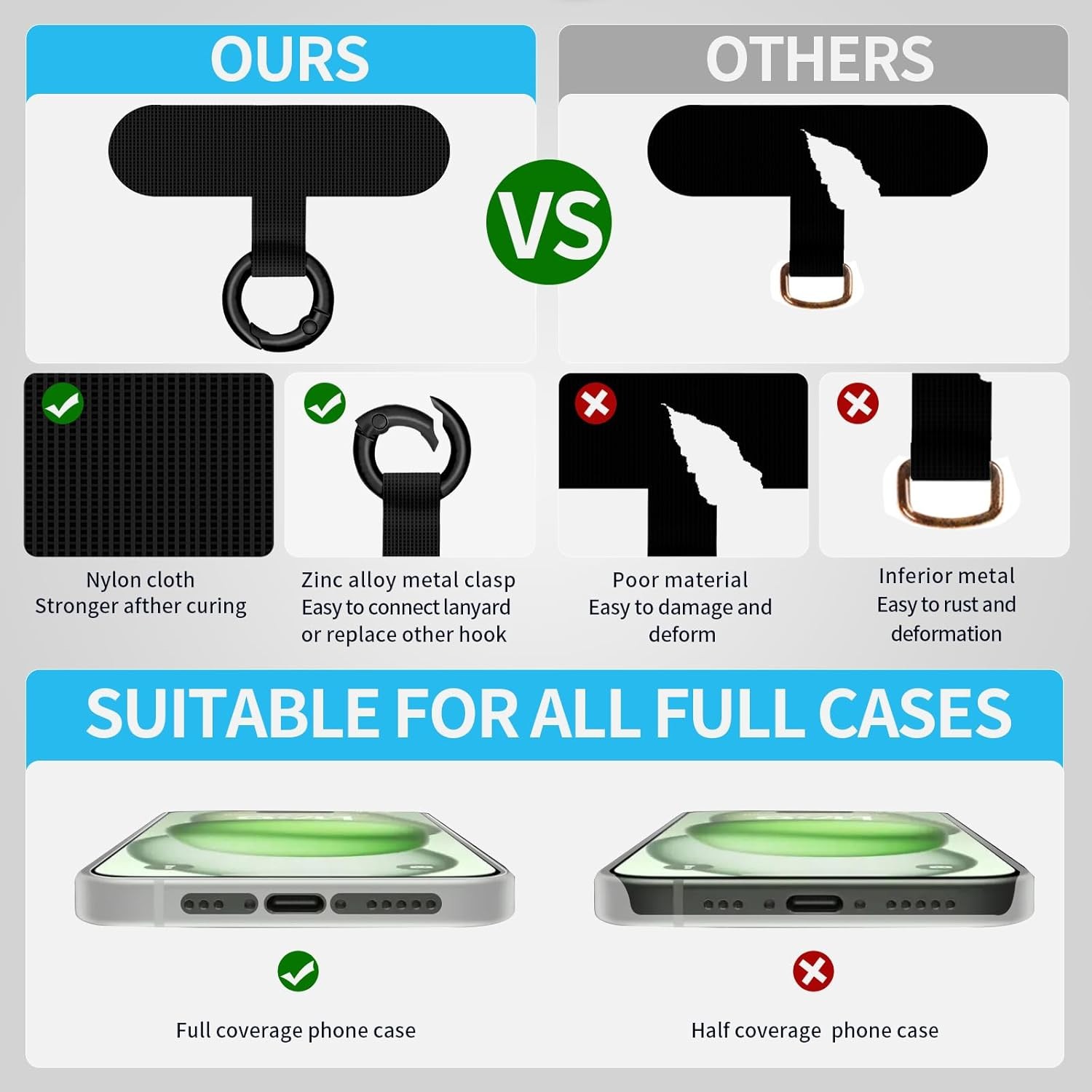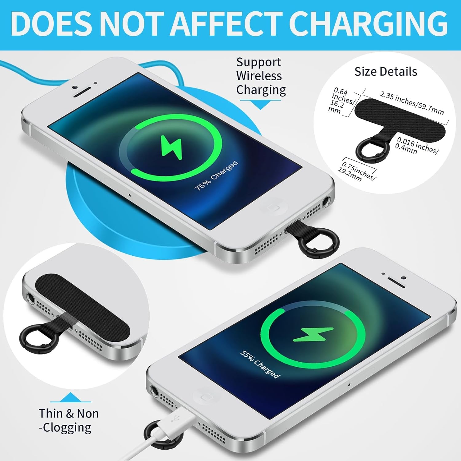 Phone Tether Tab, 2 Pack Cell Lanyard Patch Without Adhesive, Black