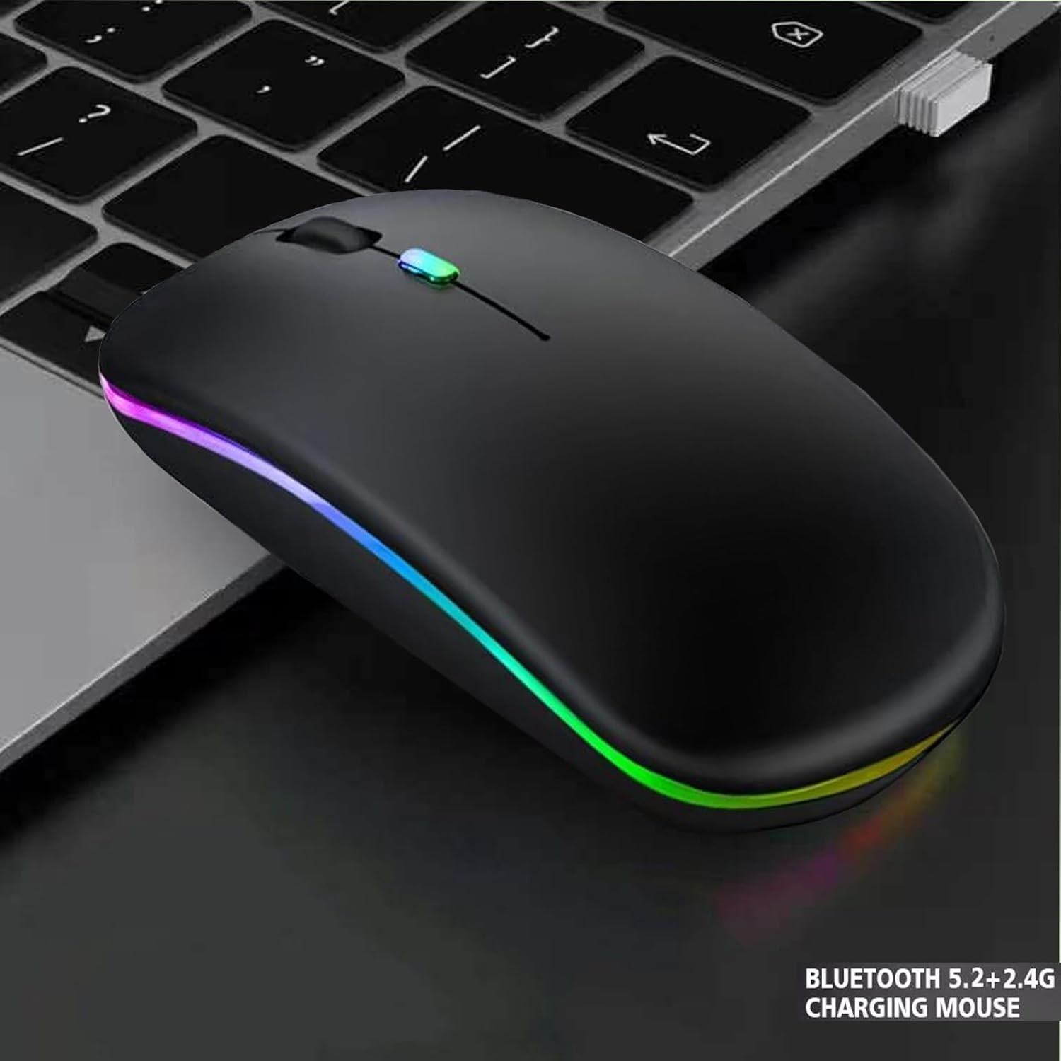 LED Wireless Slim Silent Dual-Mode 2.4G BT Rechargeable 7-Color black