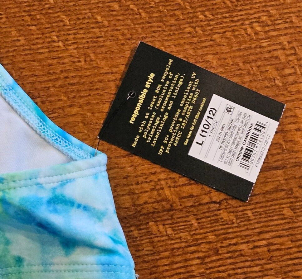NEW Girls Swim Bikini Top Blue Green Tie Dye Large 10/12 Art Class
