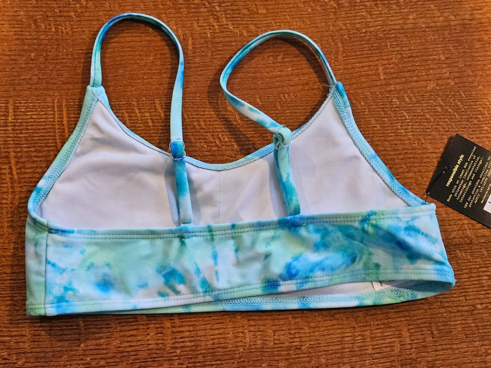 как выглядит NEW Girls Swim Bikini Top Blue Green Tie Dye Large 10/12 Art Class фото