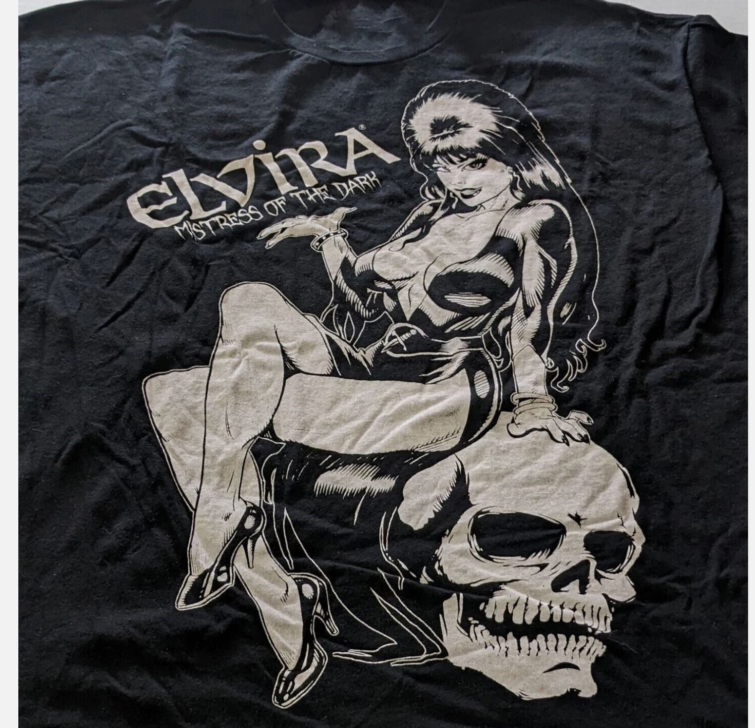 как выглядит 666 Elvira Mistress of The Dark Comic Skull Unisex Reprint T-Shirt cotton фото