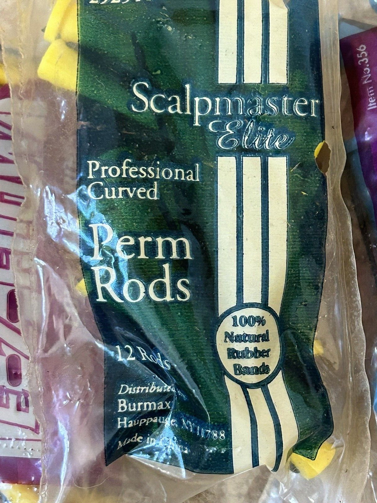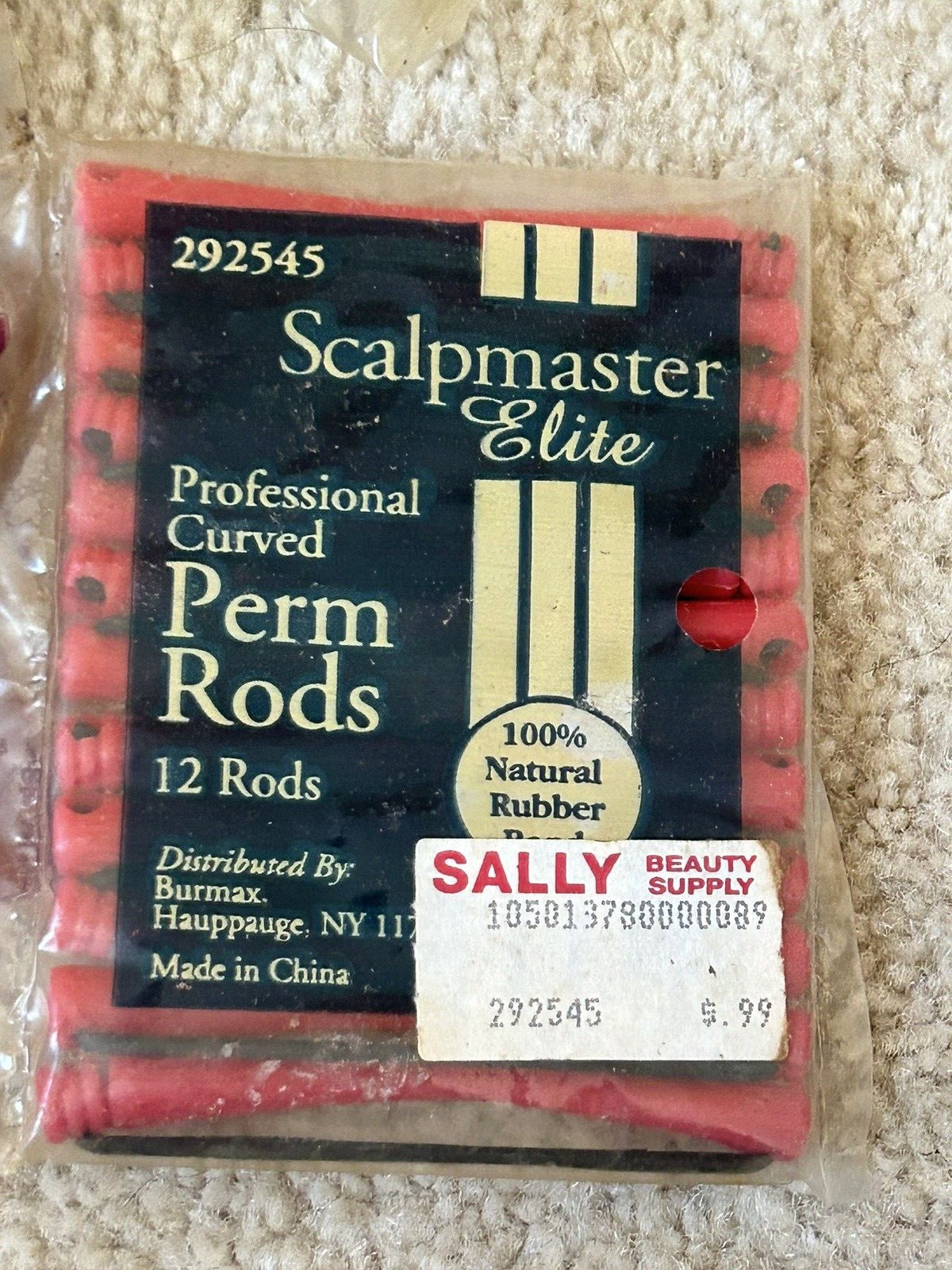 Set of 6 Pkgs Vintage Perm Rods Scalpmaster Burmax red Blue Yellow New 72 Pieces