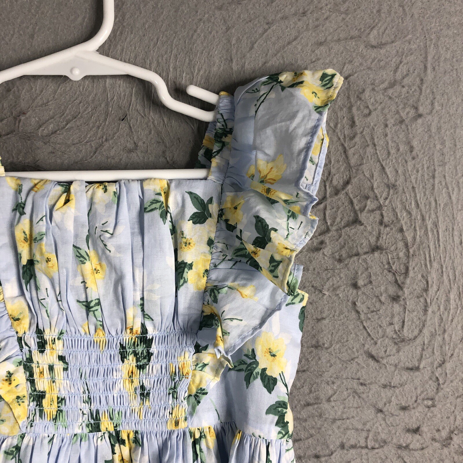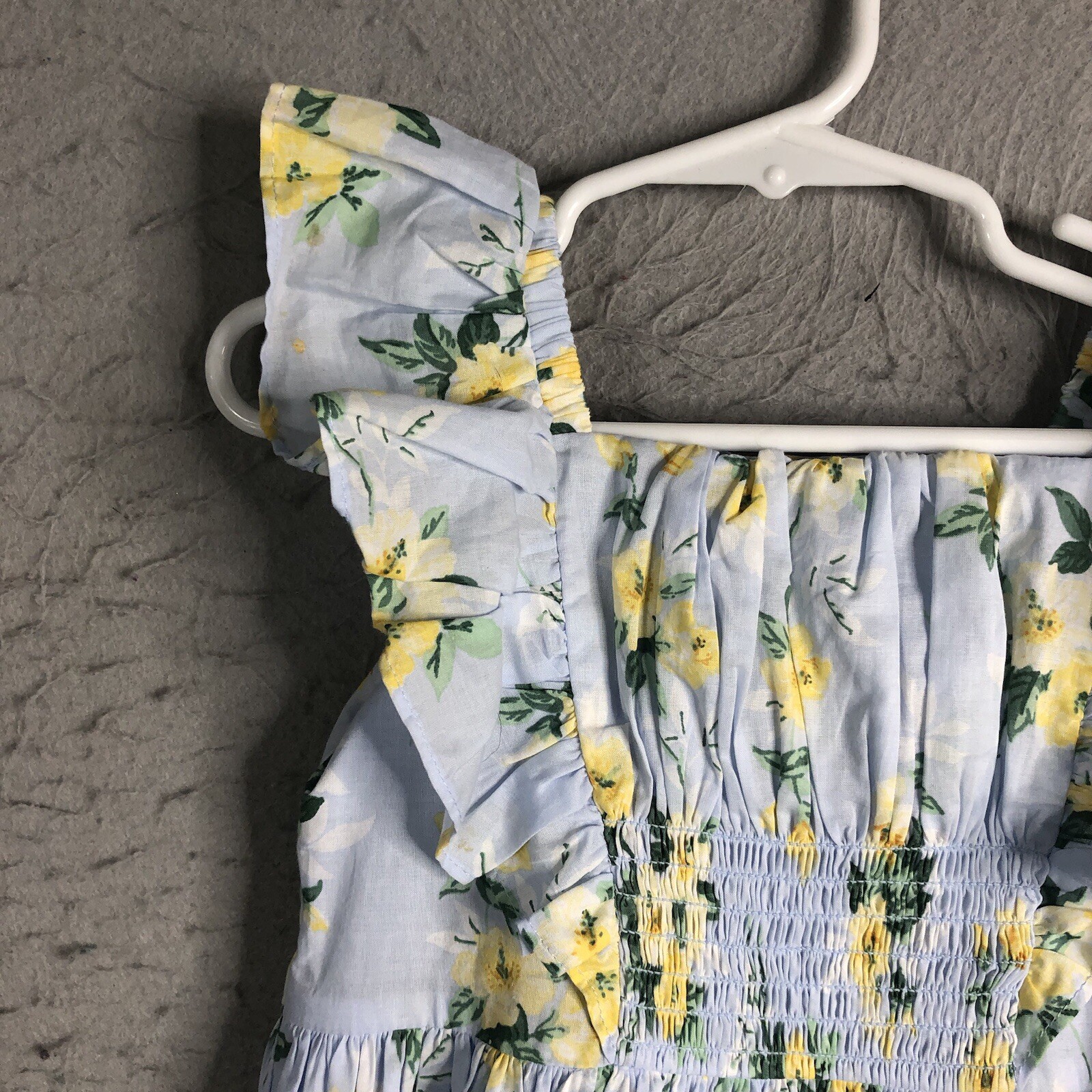 Janie And Jack Dress Little Girls 3 Blue Yellow Floral Cottage Core Smocked