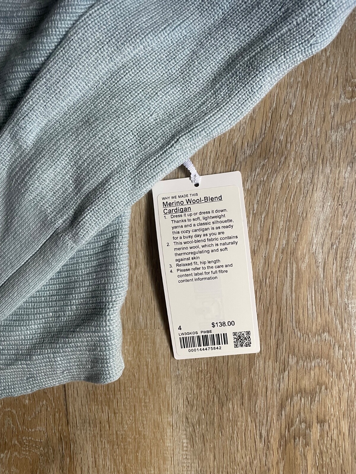 как выглядит Lululemon Merino Wool-Blend Cardigan Powder Blue Size 4 фото