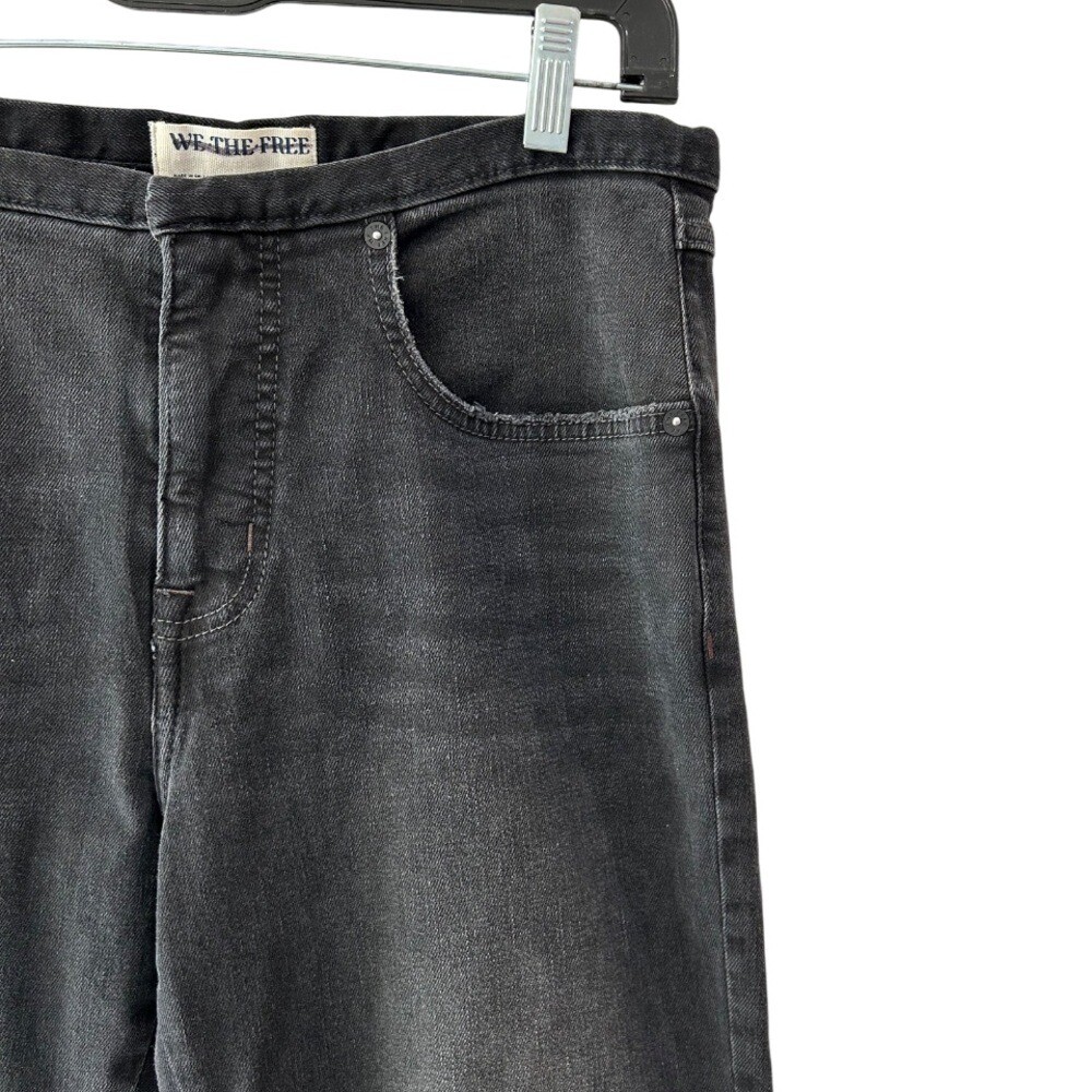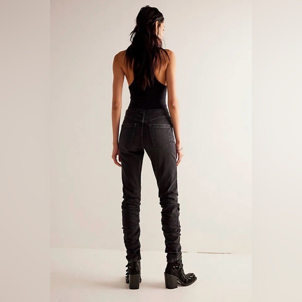 как выглядит Free People We The Free Dahlia jeans 28 black Stacked Straight Leg ruched NWOT фото