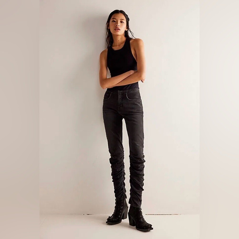 Free People We The Free Dahlia jeans 28 black Stacked Straight Leg ruched NWOT
