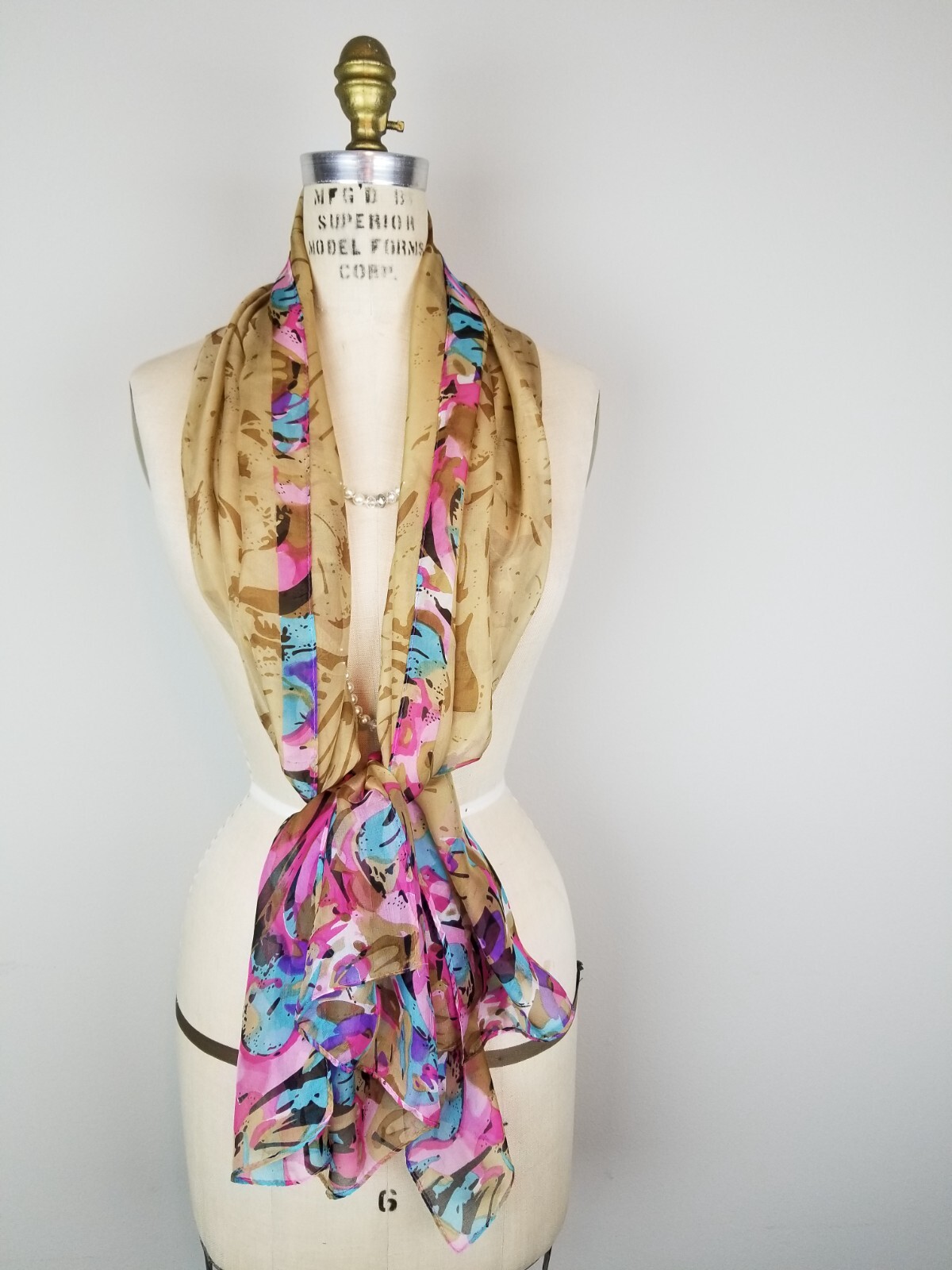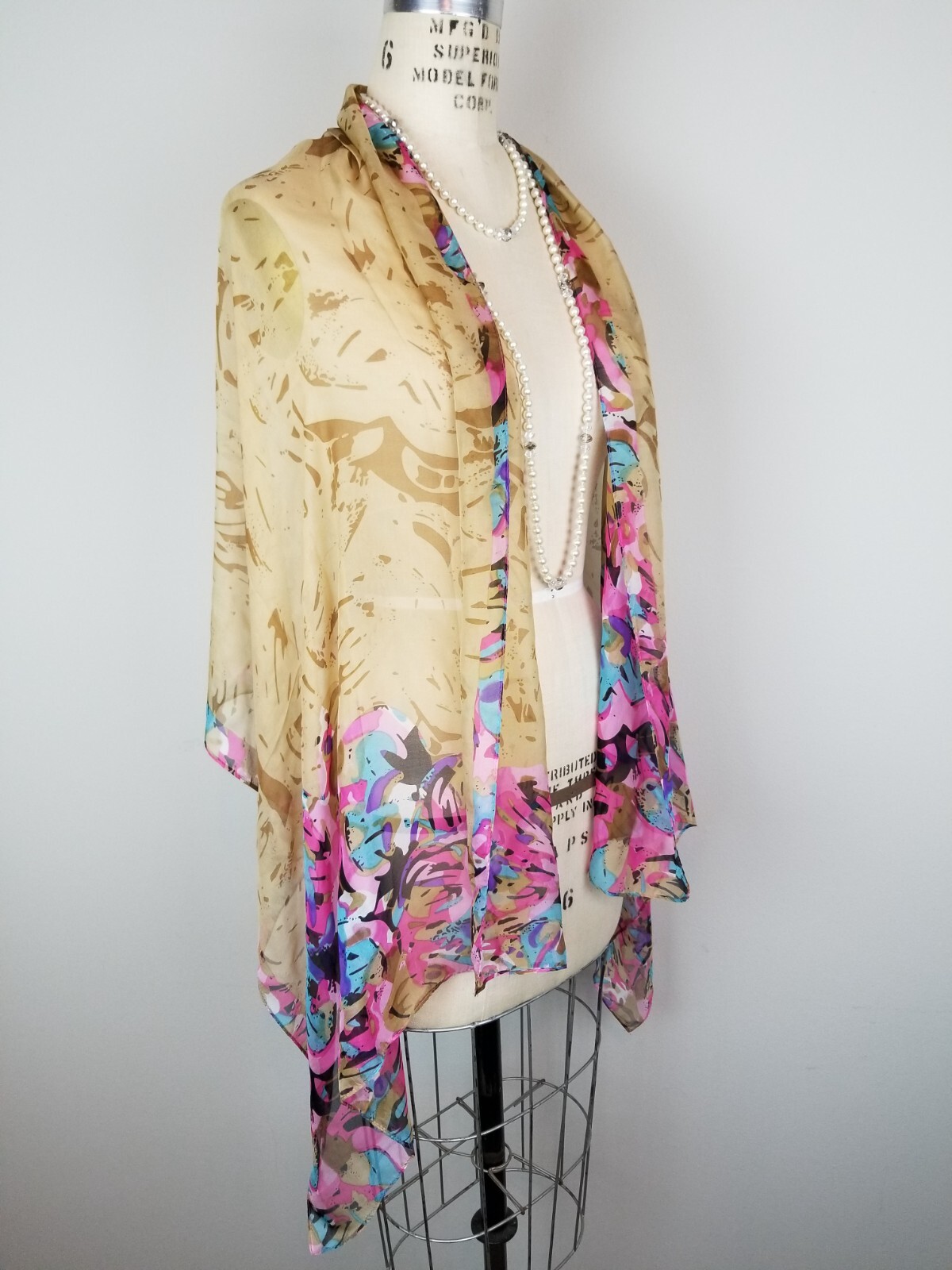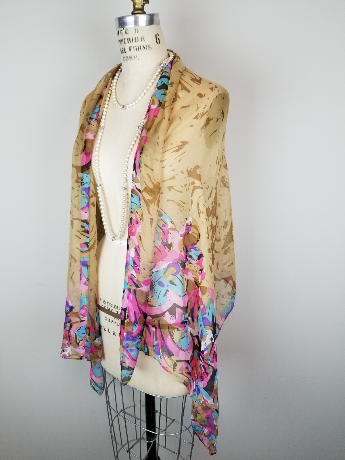 как выглядит Vintage Sheer Silk Scarf Wrap Pink Purple Multicolor Rolled Stitched Hem 54" фото