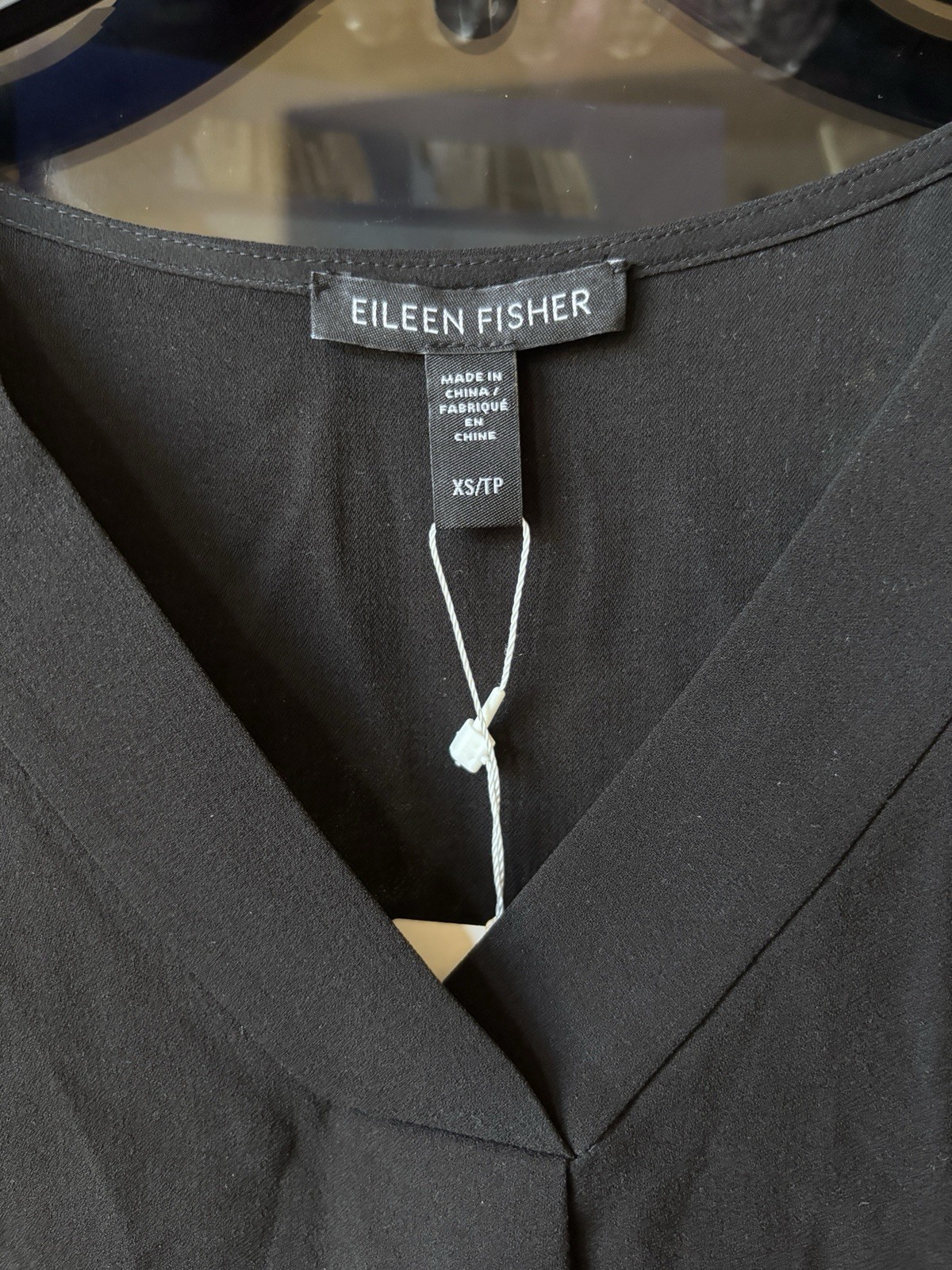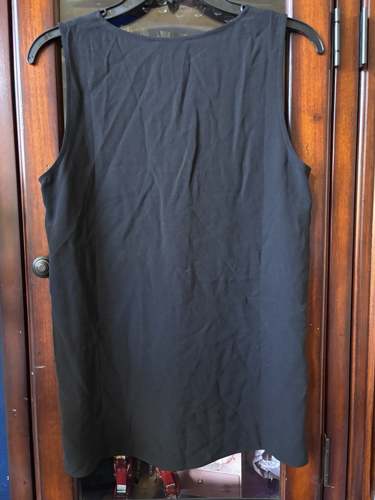 как выглядит EILEEN FISHER Womens Black Silk Georgette V Neck Sleeveless Shift Tank Size XS фото