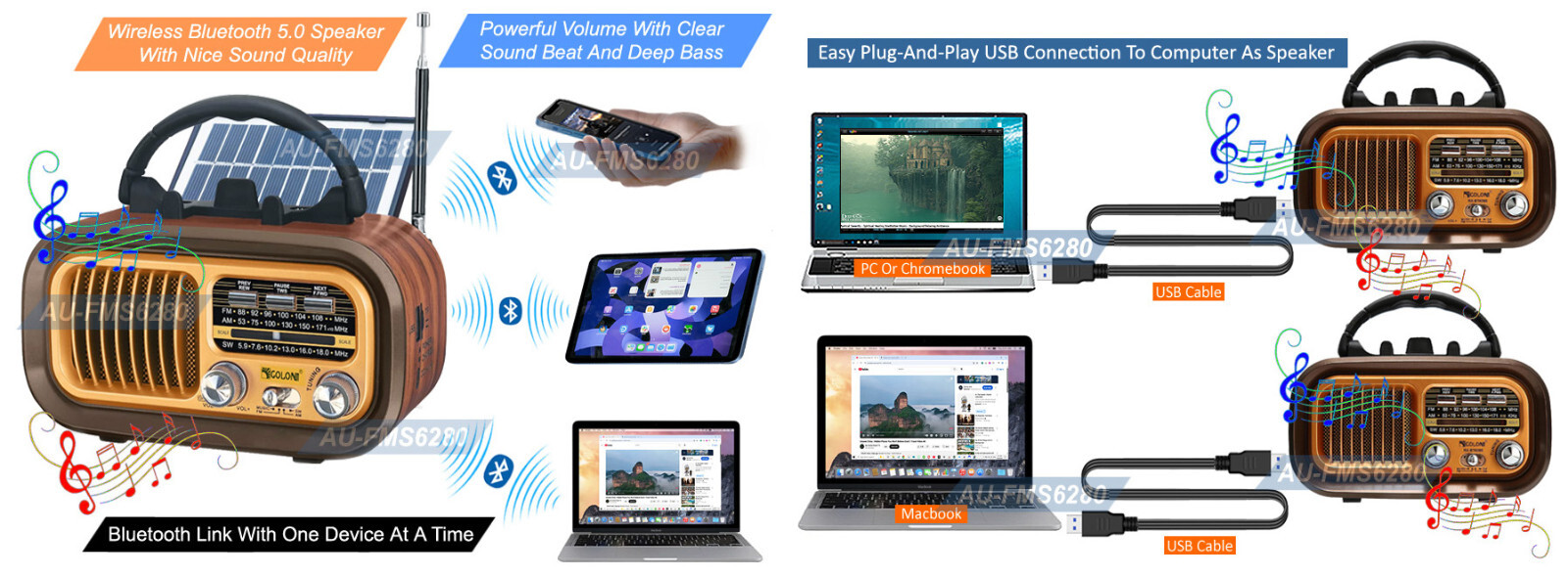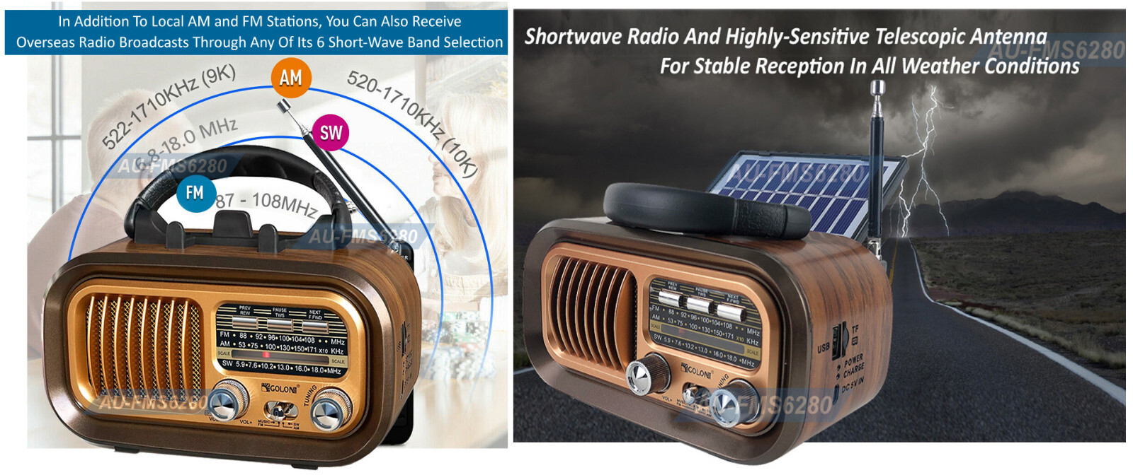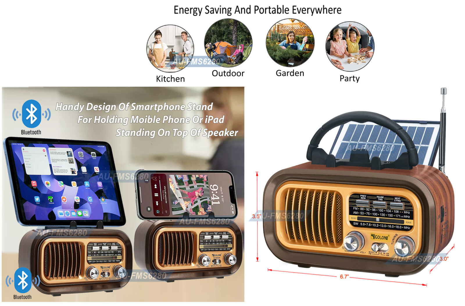 3-In-1 AM FM SW Retro Radio MP3 Bluetooth Speaker Solar Panel DC 5V USB