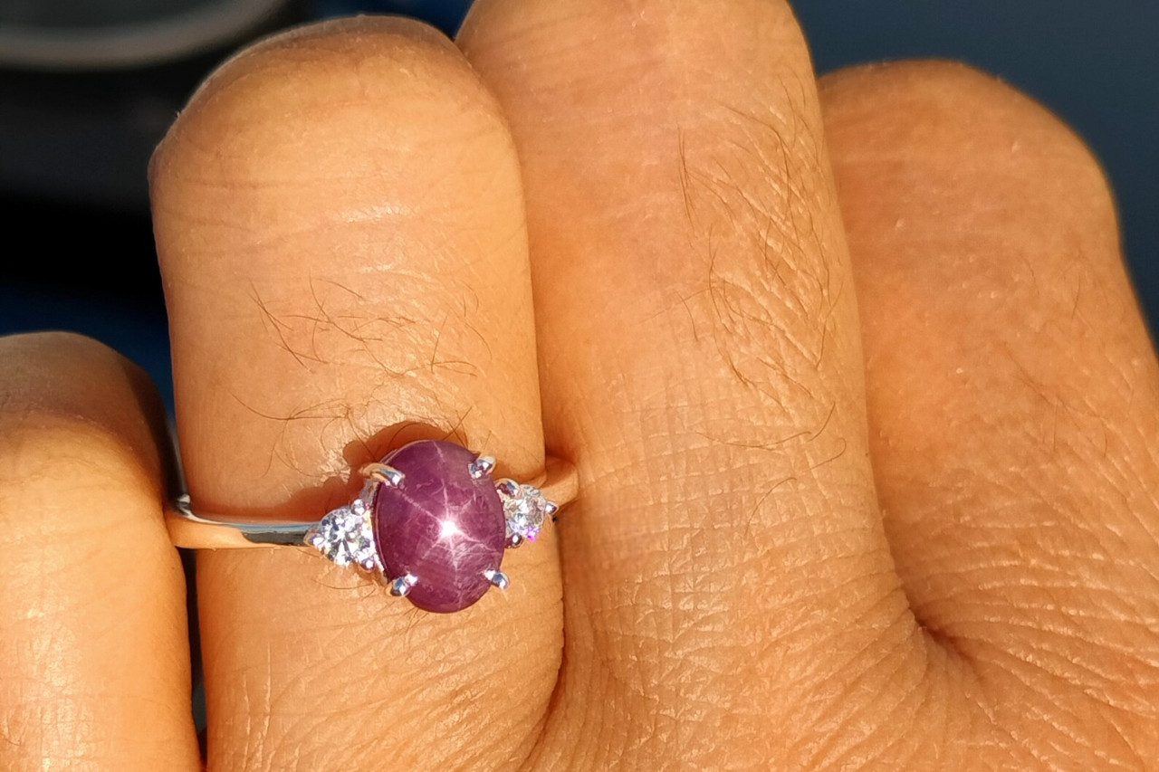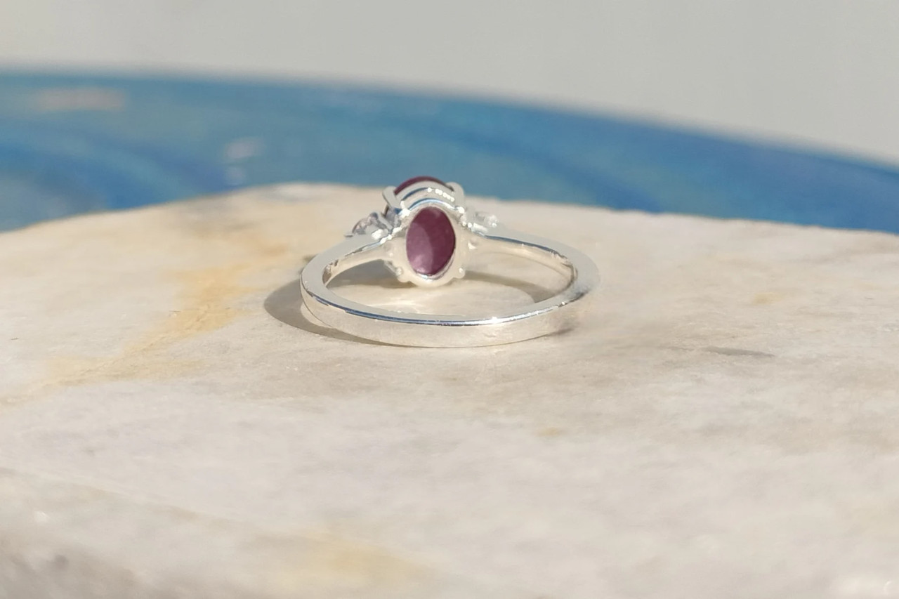 • Natural Star Ruby Ring, 925 Silver, July Birthstone, Oval Star Ruby Ring