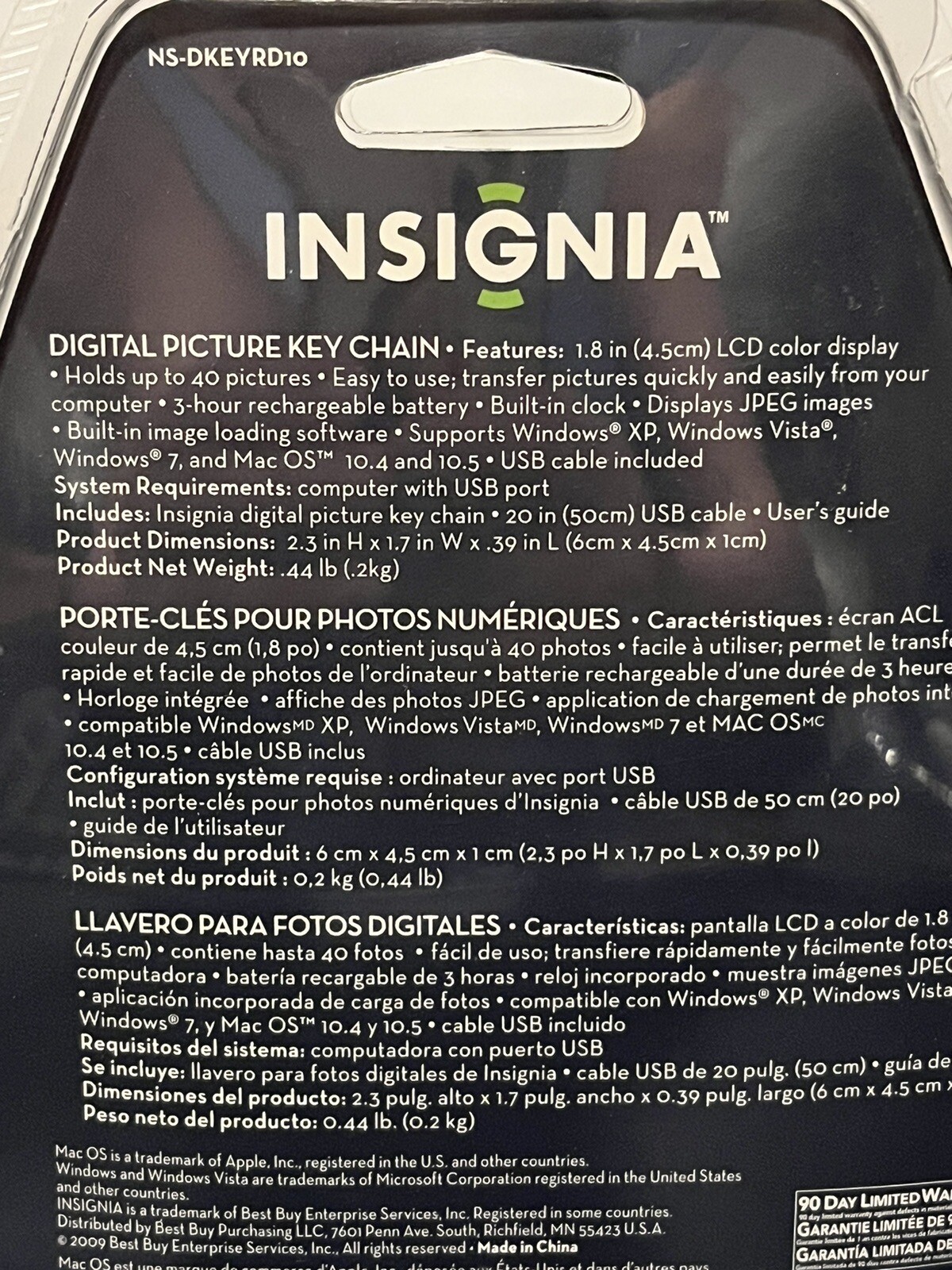 Insignia - 1.8 LCD Digital Photo Key Chain Red - NS-DKEYBK09 Holds Up To 40 Pic