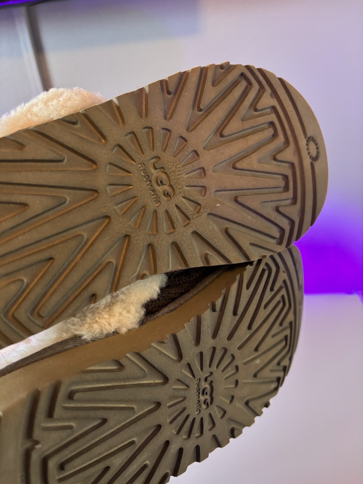 как выглядит Womens/Kids UGG Cozy Knit Brown Slippers w/ White Fur Size EU 32 Size 2 US GOOD фото