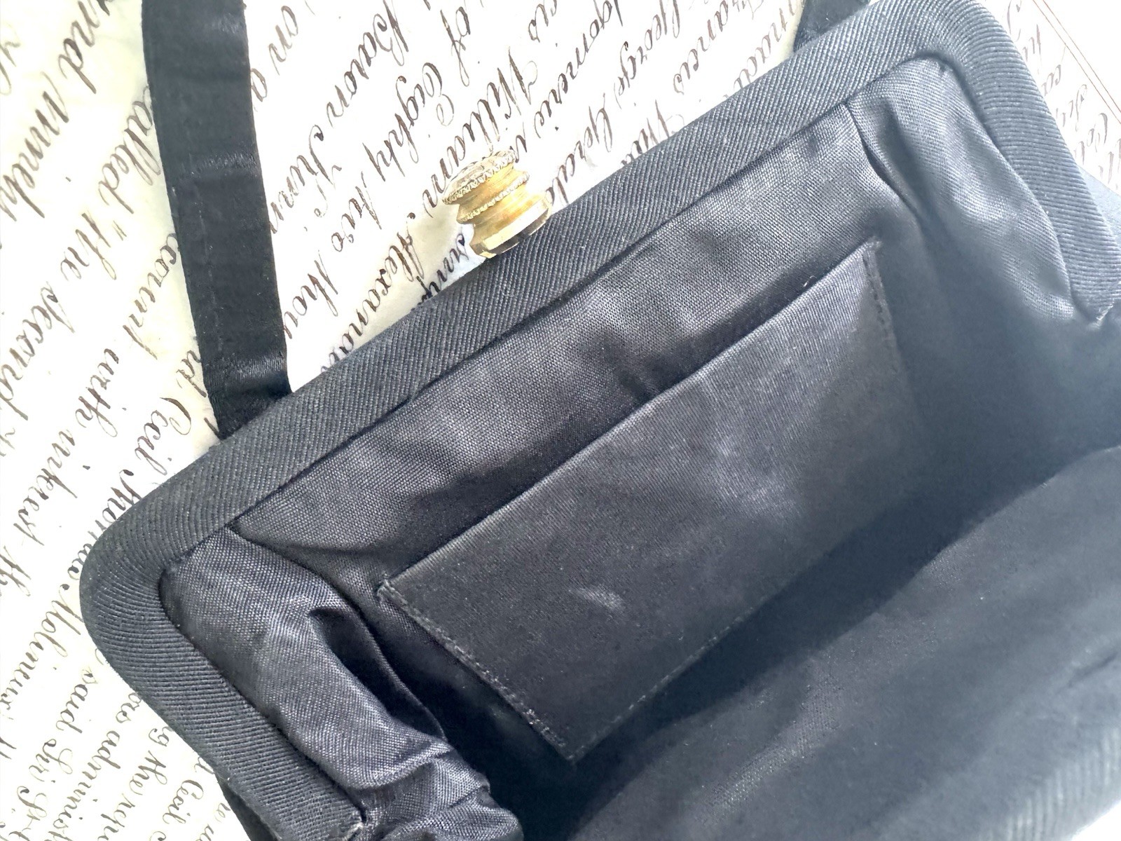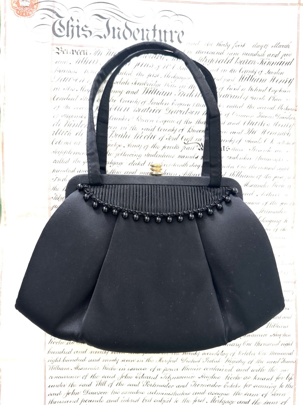 Vintage Black Double Handle Handbag Beautiful Bead Accents Gold Tone Closure