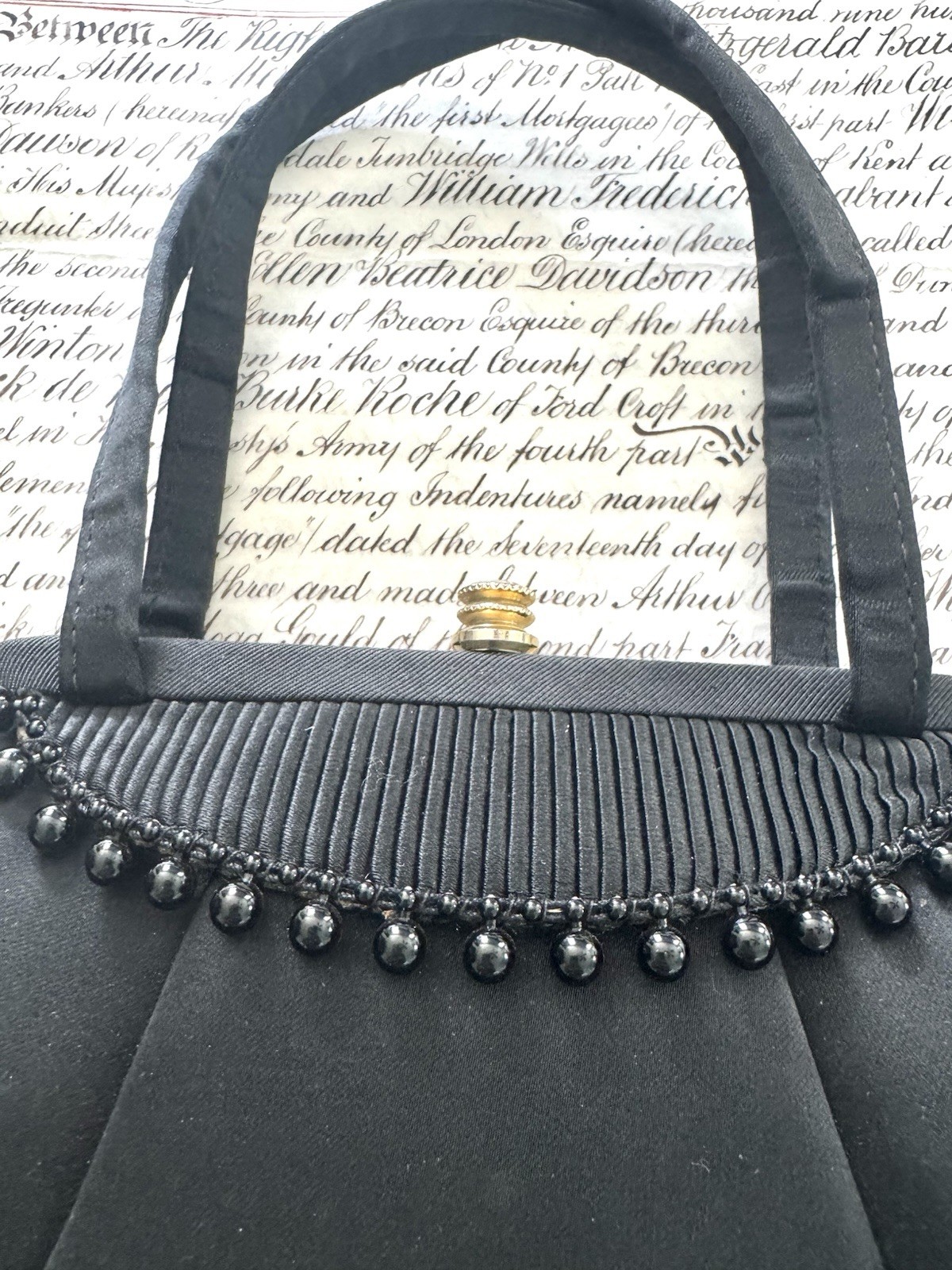 как выглядит Vintage Black Double Handle Handbag Beautiful Bead Accents Gold Tone Closure фото