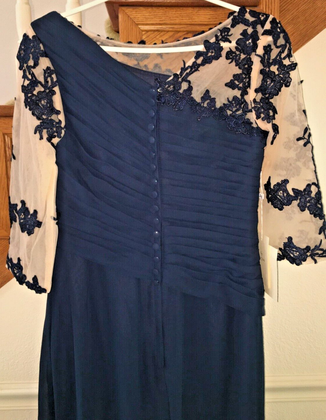 new nwt Womens LT LanTing Navy Blue Lace Gown MOTHER OF THE BRIDE SIZE 10 36