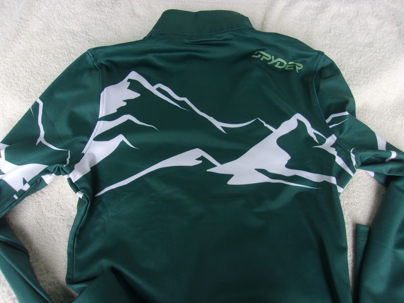 NWT Spyder pullover, women's XS, green white, polyester, skiing print, 99